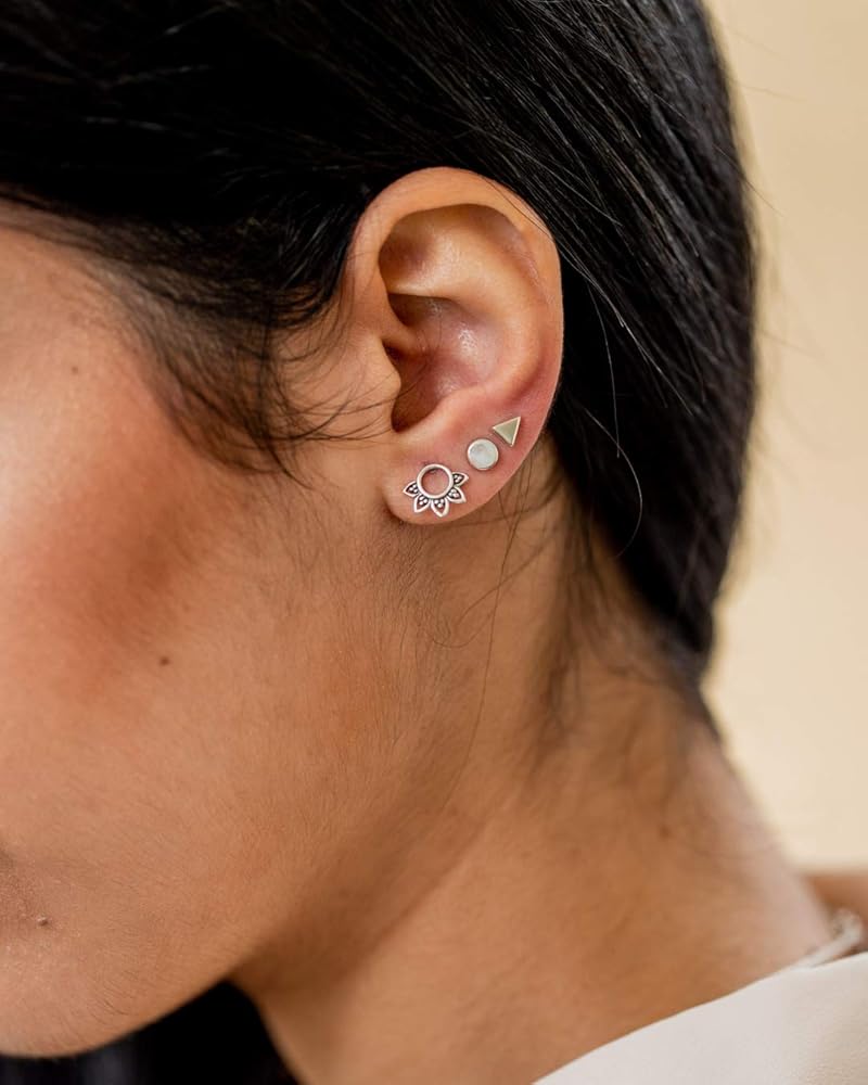 أضف بعض الأناقة الهندسية إلى أي زي مع هذه الأقراط المثلثة المصقولة يوميًا. مصنوع يدويًا من الفضة الإسترلينية التي لا تسبب الحساسية مع دعامات أذن من الفولاذ الجراحي، لذلك فهي آمنة للأشخاص ذوي البشرة الحساسة.