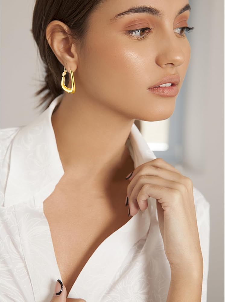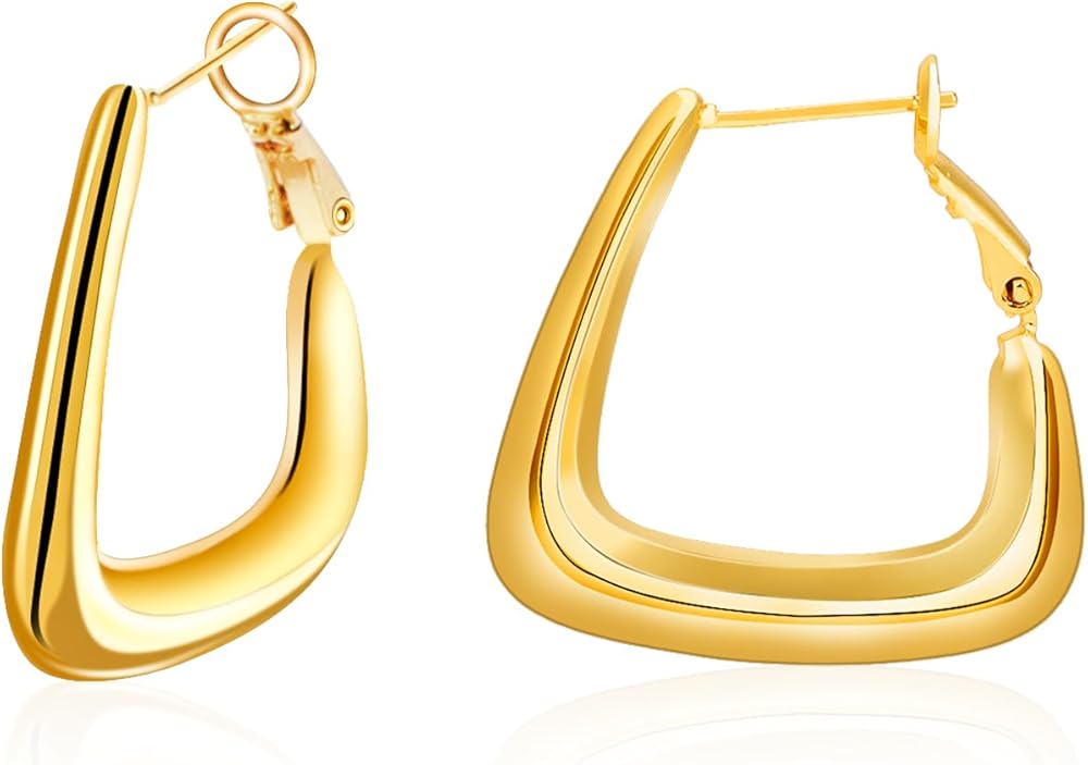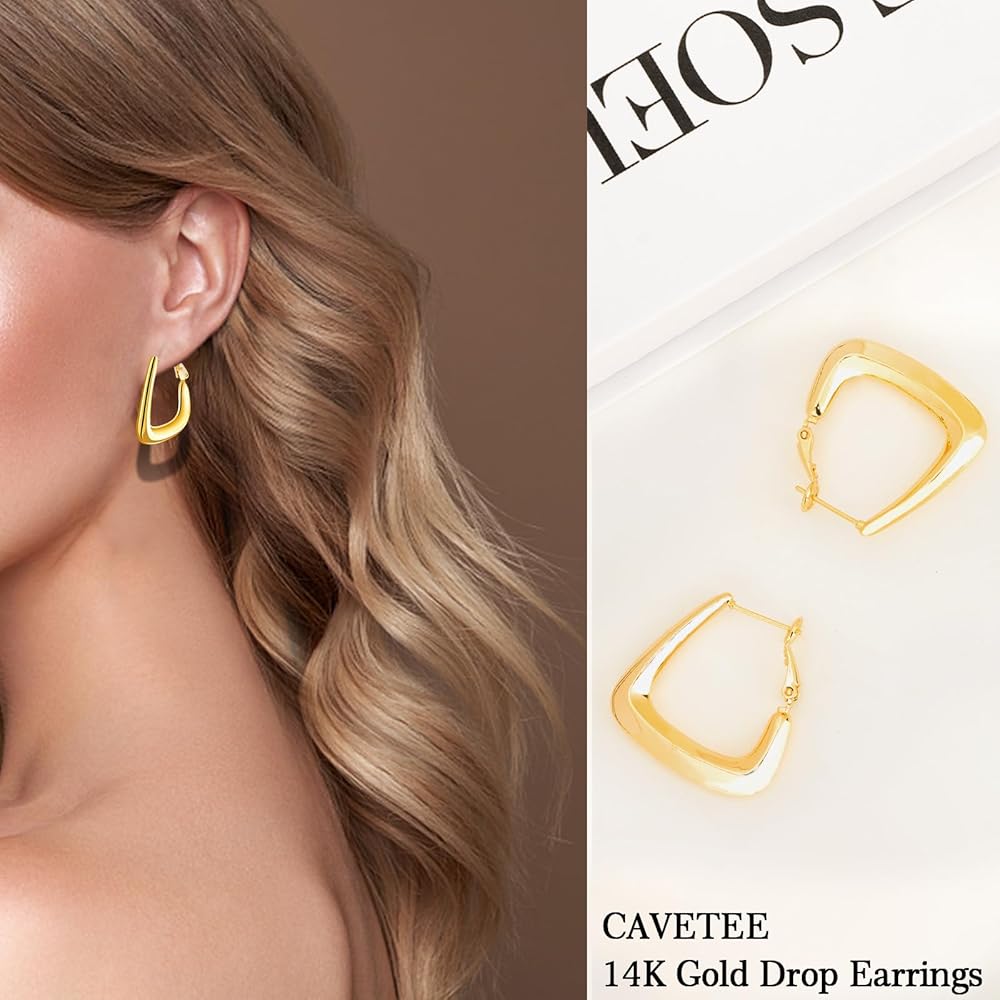أقراط ذهبية هندسية أنيقة - الأقراط الحلقية المطلية بالذهب هي أحدث طراز لهذا الموسم، يمكن للأقراط العصرية أن تعزز مظهرك وشخصيتك في أي مناسبة. أقراط هندسية ذهبية مصنوعة لتكون سهلة الارتداء والخلع للارتداء طوال اليوم.