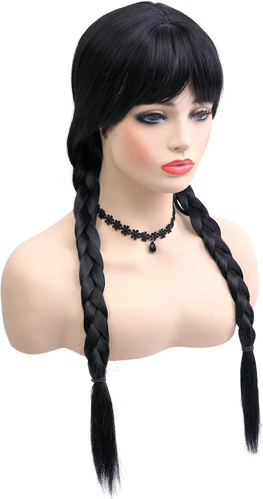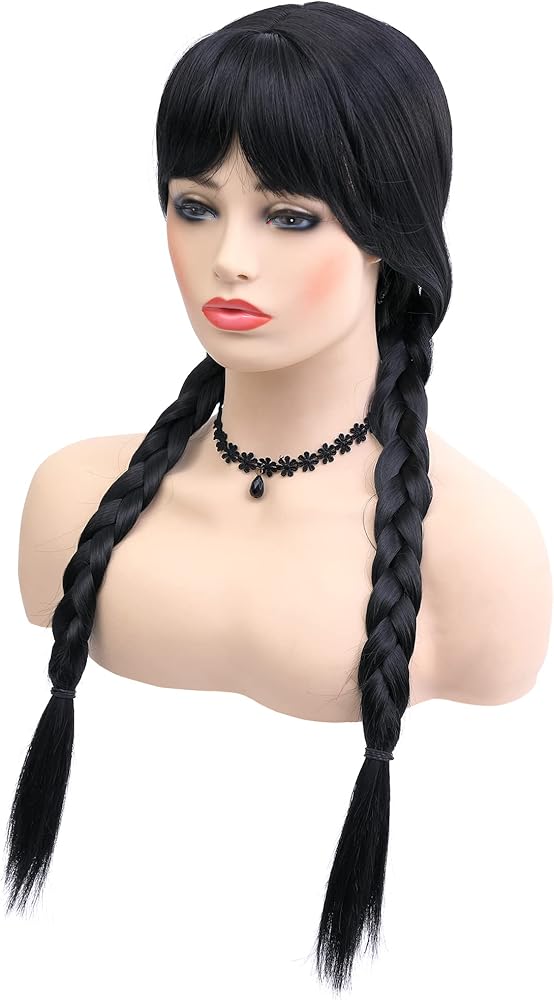 🎃 تصميم مخصص: مستوحى من المسلسل التلفزيوني الرعب الكوميدي القادم "الأربعاء"، عمل المصممون ذوو الخبرة ومصممو الأزياء التنكرية المحترفون معًا لإنشاء هذا الشعر المستعار القوطي الجميل.
