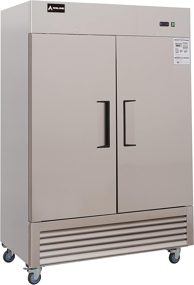 1. Embraco compressor, Carel controller, Fan cooling system 2. Temperature: -8℉~0℉(-22.2℃~-17.8℃) 3. 155lbs loading capacity per shelf 4. 6 year warranty on compressor, 2 year warranty on all parts labor 5. ETL certification with ETL SAFETY and ETL SANITATION and Energy DOE certification. Features: Precision ventilated refrigeration system keeps food at safe temperature. Global famous electronic control system makes it easy to adjust temperature set point and defrost frequency. Self-closing doors with 90 degree stay-open feature. Locks and keys included. Removeable installation board makes it easy to access condenser coil for cleaning and service. Stainless steel exterior and interior, ensure longer life. Anti-corrosive coated copper tube evaporator ensure no failure use. Automatic defrost system and evaporate the defrosting water itself, no need extra discharging water pipe. Additional Info: Embraco brand R290 heavy duty Compressor, 3 years guarantee, lower noise design Carel brand digital display controller, easy to read and adjust the inside temperature. Full copper tube condenser and evaporator, special anti-corrosive coated evaporator. DC power fans, IP class 65, safe and save energy 75%. Outside and inside stainless steel, outside steel is fingerprint resistant.