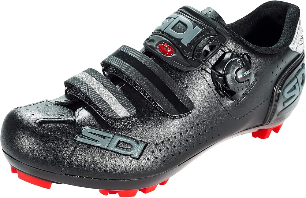 نظام إغلاق ناعم بمشط القدم نظام إغلاق ناعم بمشط القدم هو حزام محيطي يوضع على رقبة القدم، مرن وتشريحي مقترن بمادة ناعمة لمزيد من الراحة. يوزع الضغط بالتساوي على رقبة القدم ويضبط على كلا الجانبين للحصول على وضع مركزي مثالي للحزام اعتمادًا على ما إذا كان مشط القدم منخفضًا أو مرتفعًا. يلغي النظام الحاجة إلى استخدام فاصل. نظام إغلاق مشط القدم الناعم قابل للاستبدال. يتيح لك نظام Tecno-3 إغلاق الحذاء بطوله بالكامل، وتكييف الجزء العلوي مع شكل القدم وبالتالي الحصول على مقاس شخصي. تم تحسين أنظمة إغلاق Sidi الموثوقة والقابلة للاستبدال بالكامل بفضل نوع جديد من الكابلات، مما يسمح بالتعديل السريع بسهولة بالغة. يمكن تعديل نظام TECNO-3 حتى أثناء السباق بفضل الزر المبتكر. الضغط على الرافعة، مما يسهل التعديل. كعب SIDI المتكامل الكعب مدمج ومصمم حديثًا وخفيف الوزن ومعزز لمنع التشوه بعد الضغط والضغط لفترة طويلة. مصبوب تشريحيًا، يعمل على تثبيت ودعم القدم عند استخدام الدواسات. توفر الحشوات العاكسة على الكعب أمانًا أكبر للرياضي على الطريق، مما يساعد على الإشارة إلى وجود راكب الدراجة في ظروف الرؤية المنخفضة. نعل SR17 MTB نعل Sidi MTB الجديد مصنوع من النايلون مع حشوات من البولي يوريثان. تم تصميم شكل الإدخالات لركوب الدراجات الجبلية، مما يتيح قبضة ممتازة، ويسهل تشتيت الطين ويمنح ثباتًا جيدًا. يعتبر الملحق المركزي الذي يتميز بنقش سيدي بمثابة مانع للانزلاق وعملي (مفيد) خاصة للأشخاص الأقل خبرة. يمكن استبدال طرف منطقة التآكل (خاصة) عند المشي بمسامير، ويوفر دائمًا إمكانية تركيب المسامير لتحسين الجر على الأراضي الموحلة بشكل خاص. يمثل SR17 أفضل نتيجة من حيث صلابة الدواسة والانحناء للمشي.