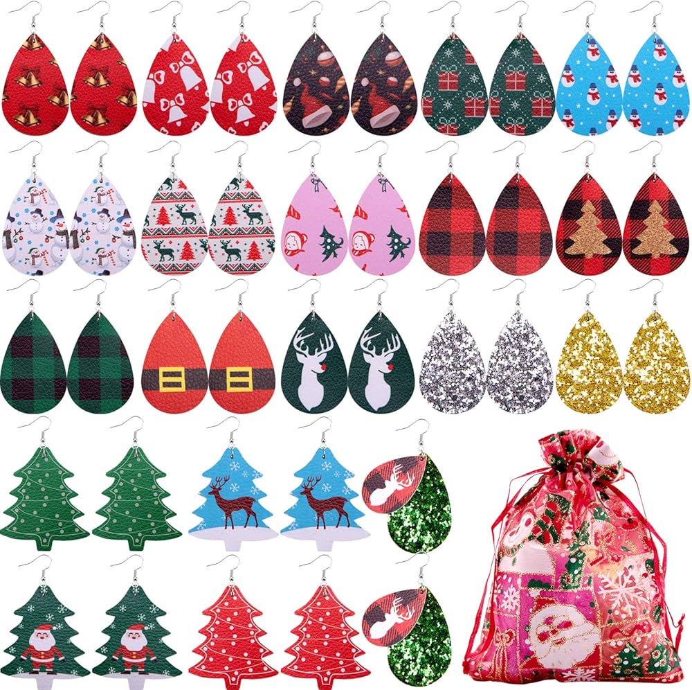 مجموعة أقراط عيد الميلاد: ستحصل على 20 زوجًا من أقراط عيد الميلاد بأنماط وألوان مختلفة، مما يوفر مزاجًا ملونًا لك