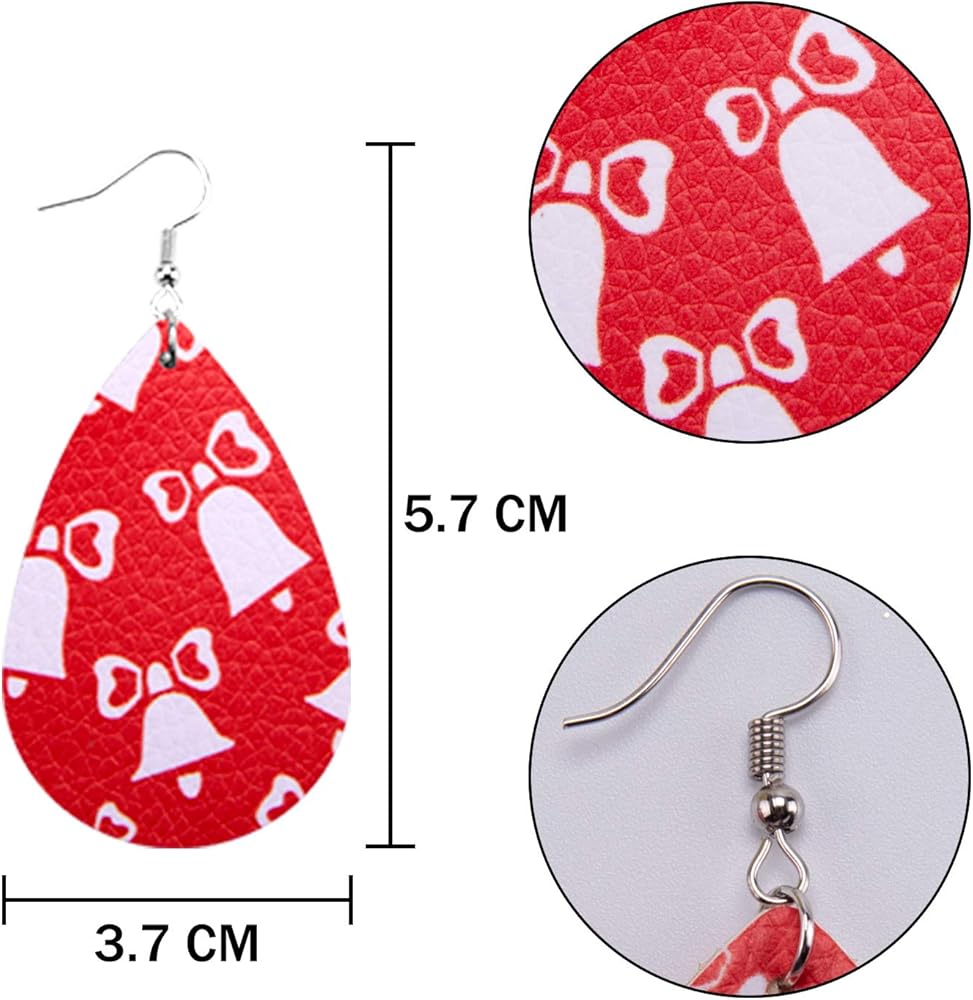 ملاحظة ودية: الأقراط الجلدية لعيد الميلاد مع ملحقات صغيرة وحادة، يرجى حفظها بعيدًا عن الأطفال، وحقيبة التخزين ذات الرباط هي هدية إضافية، والتي لا تمثل جودة الأقراط الجلدية