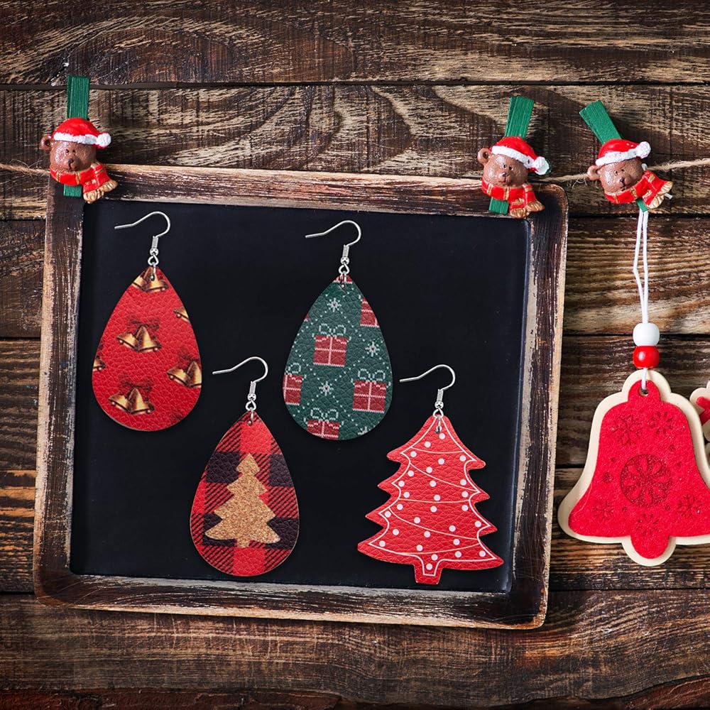 نمط عيد الميلاد: أقراط Duufin الجلدية لعيد الميلاد مصممة بنمط عيد الميلاد الفريد، سانتا كلوز، الأيائل، شجرة عيد الميلاد، عناصر رجل الثلج تجلب لك جوًا قويًا لعيد الميلاد