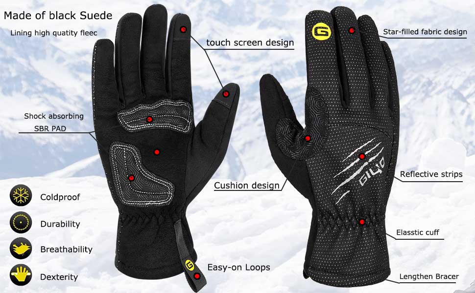【جيد التهوية والدافئ】- تم تصميم قفاز ركوب الدراجات المتين هذا للراكبين الملتزمين الذين يرغبون في البقاء دافئًا وجافًا في البرد، وهو نسيج مقاوم للرياح مبطن بالصوف على الجزء الخلفي من اليدين، ونخيل مبطن من الجلد السويدي والأصابع تمنع الهواء البارد من الوصول إلى يدك. اليدين أثناء التخلص من العرق لإبقائهما جافتين، بالإضافة إلى أن الإبهام يتميز بقماش ماص مثالي للاستخدام كممسحة للأنف أو لإزالة العرق.
