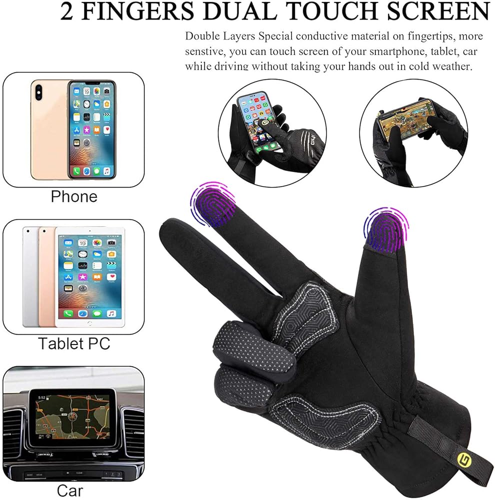 【مقاومة للماء والرياح】- غلاف عالي الجودة مقاوم للماء والرياح والثلج يحافظ على يديك جافة في الثلج أو المطر الخفيف، والقفازات الدافئة مع أساور مطاطية طويلة جدًا تمنع دخول البرد والرياح والمطر. امنح يديك حماية كبيرة ضد البرد، وهو مثالي للأنشطة الخارجية مثل ركوب الدراجات والركض والمشي لمسافات طويلة والقيادة أيضًا. لاحظ أن النسيج الخارجي مقاوم للماء، ولكن طبقات الإبهام والسبابة ليست مقاومة للماء وغير مناسبة لنقع القفازات في الماء. .