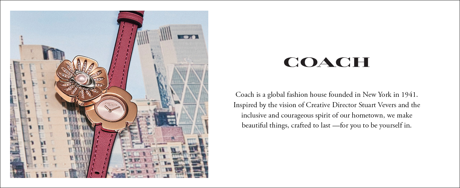 ضمان لمدة عامين: يقدم Coach ضمانًا محدودًا لمدة عامين ضد العيوب في المواد والصناعة التي تمنع الساعة من العمل بشكل صحيح في ظل الاستخدام العادي. يغطي ضمان الشركة المصنعة فقط المشتريات من بائع تجزئة معتمد.