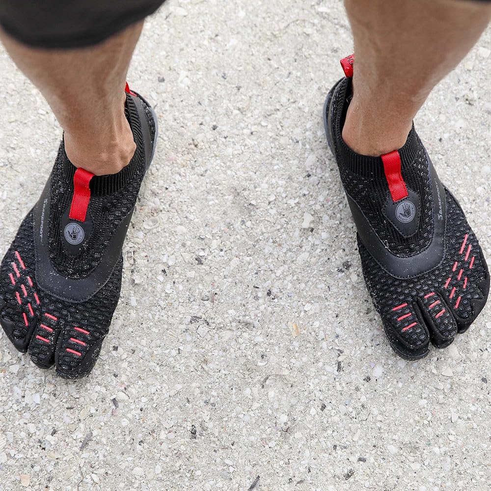 • ملمس بسيط حافي القدمين - يوفر التصميم ذو الأصابع الثلاثة الحاصل على براءة اختراع ورفع الكعب الصفري شعورًا حقيقيًا بالقدم العارية داخل وخارج الماء. يوفر القفاز 3T الدعم والثبات في الكعب والقوس ونعل الحذاء للتنقل على الأسطح غير المستوية.