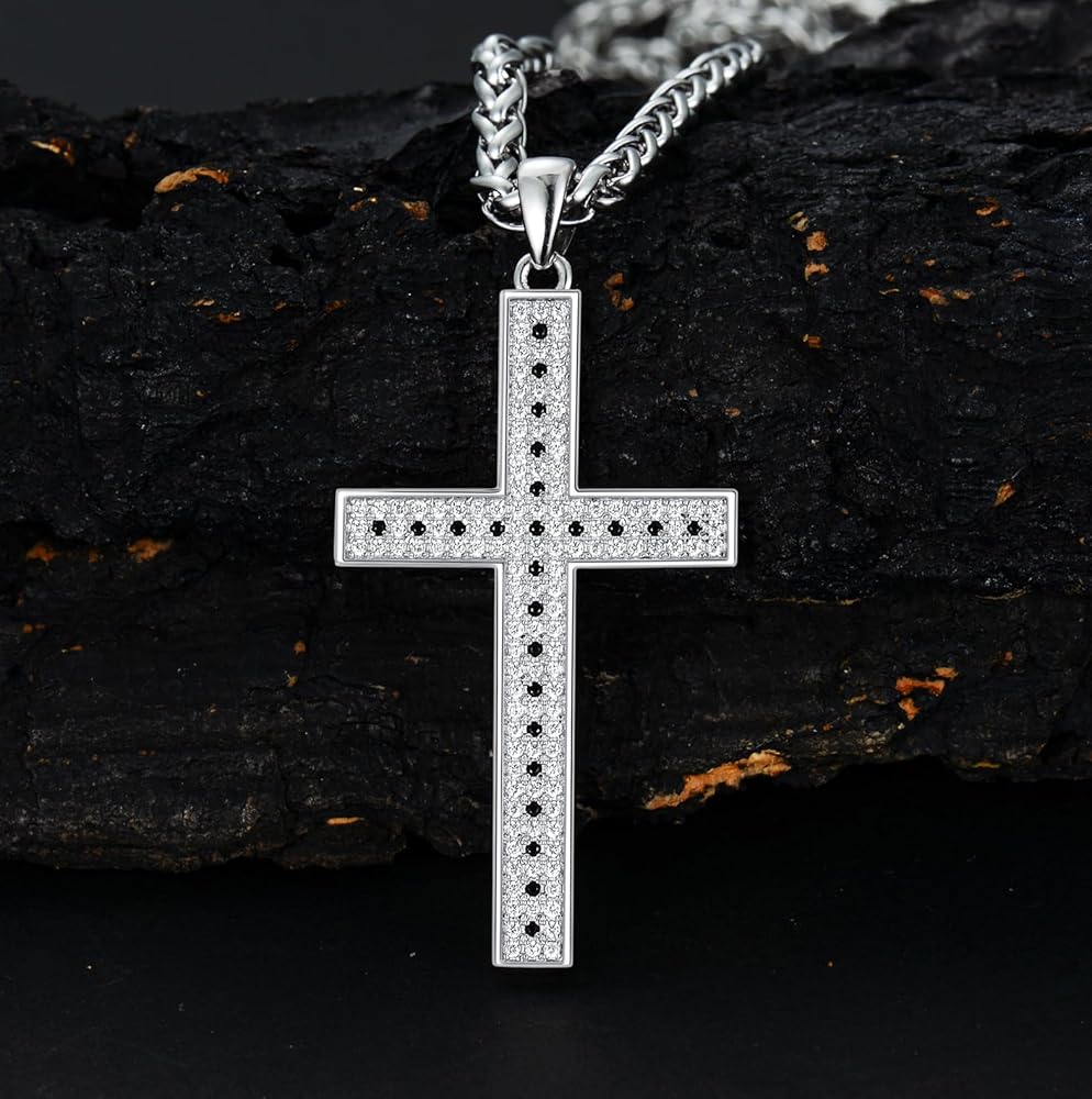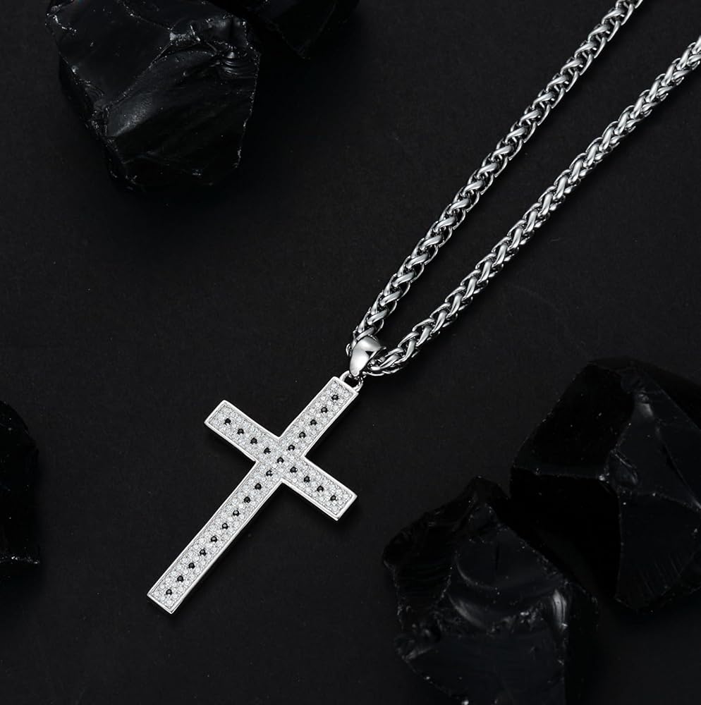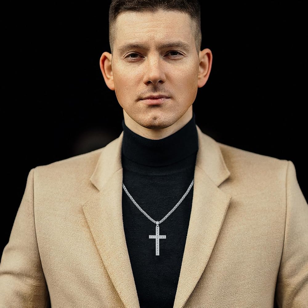 【المميزات】: قلادة متقاطعة أنيقة للرجال! 147 زركونيا مكعب مرصعة على الجهة الأمامية تجعل القلادة المتقاطعة لامعة وملفتة للنظر! إنها هدية مجوهرات جميلة للمسيحي، ولصديقه، وزوجه، وأب. رؤية المزيد عن ذلك!