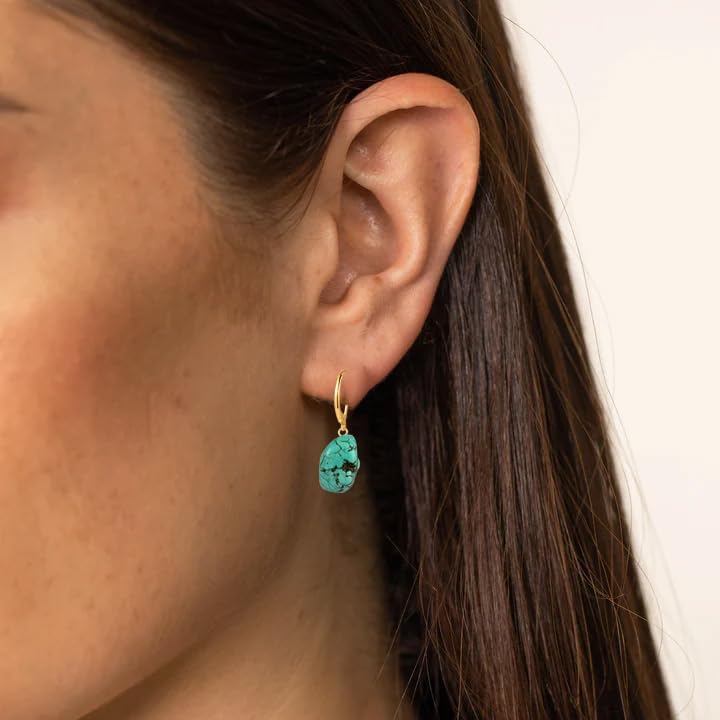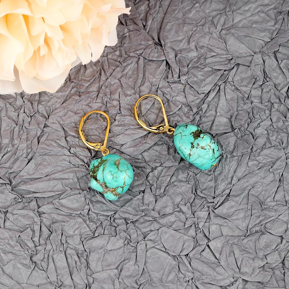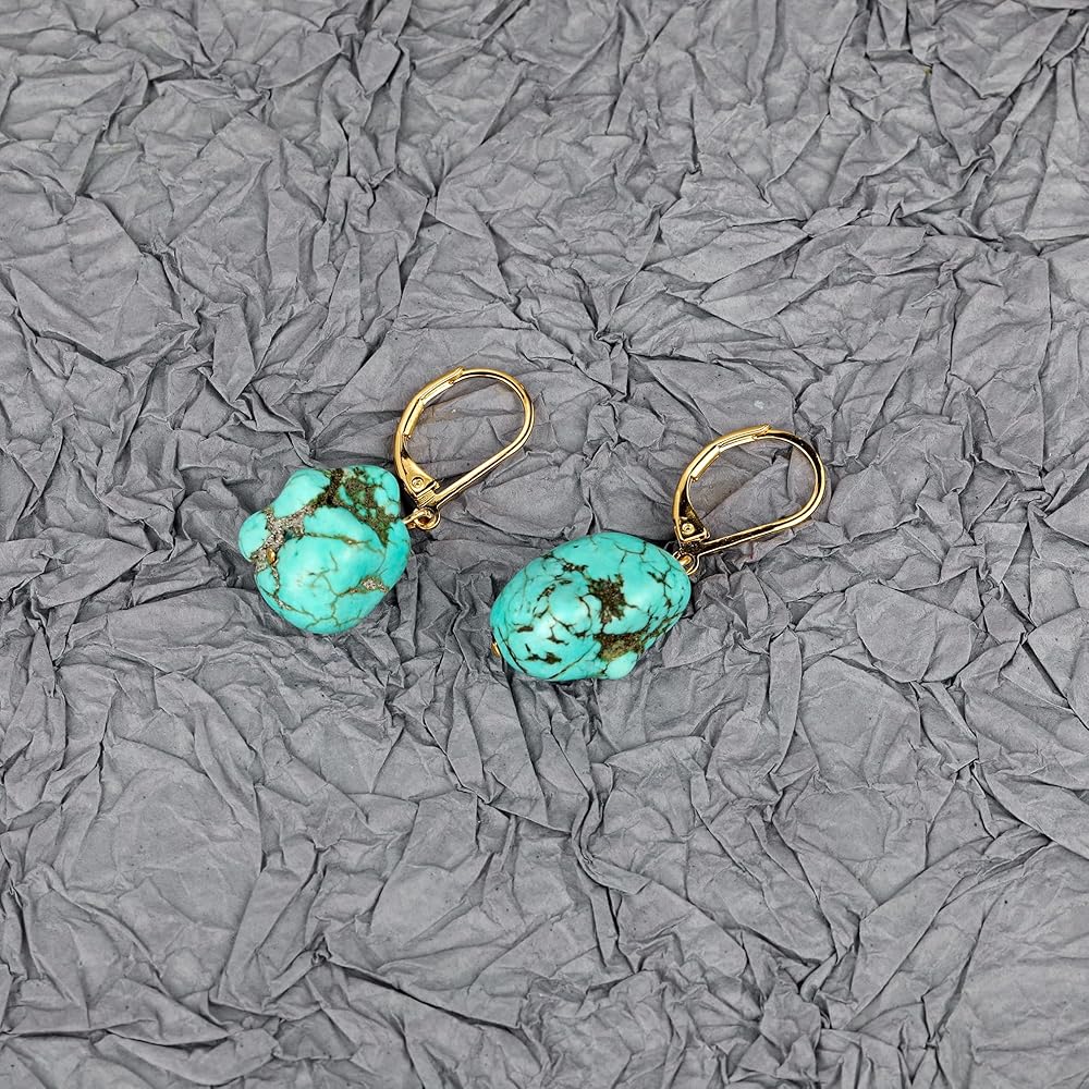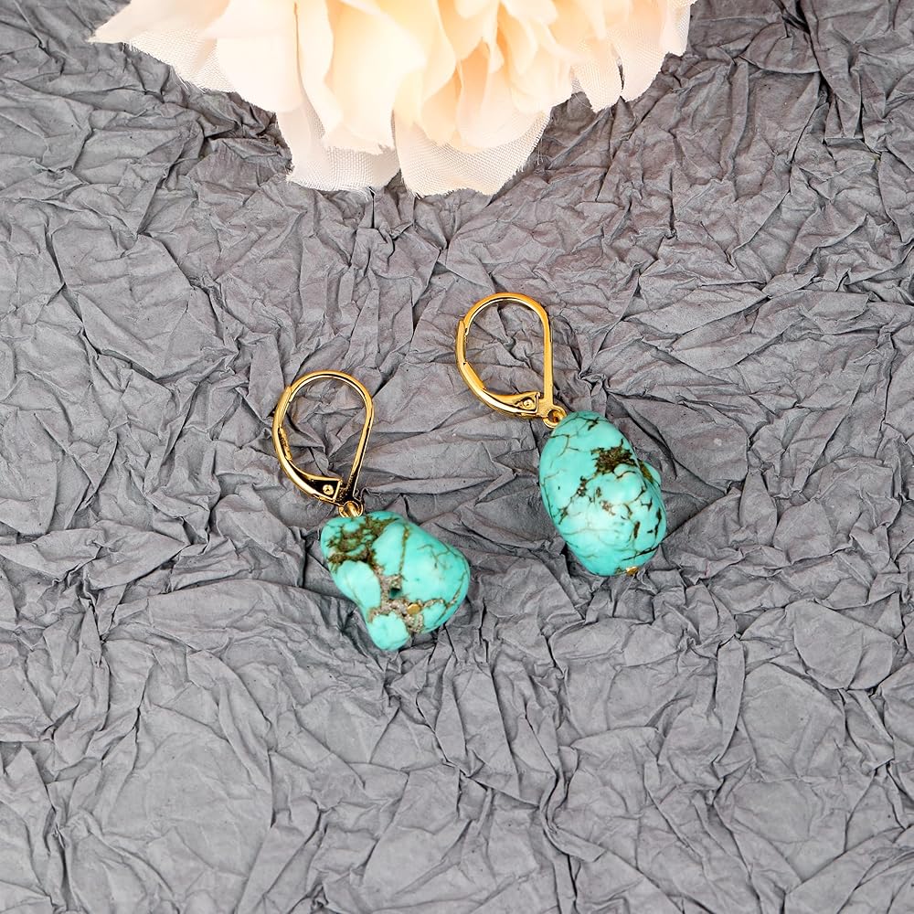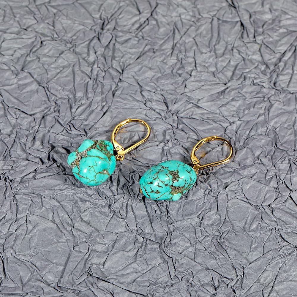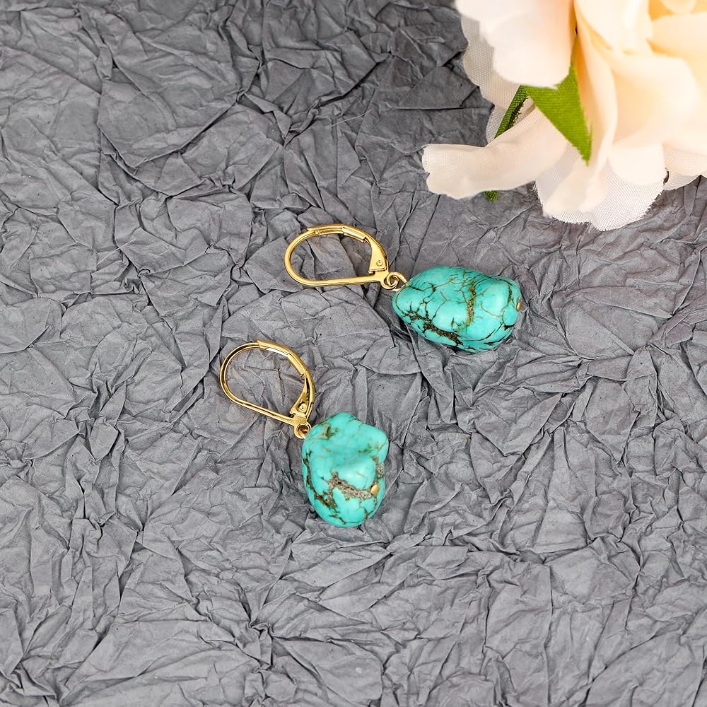 • 【المادة】خطافات أذن مطلية بالذهب عيار 14 قيراط بلون تركواز غير منتظم، مصنوعة من الفضة عيار 925 مضادة للحساسية، خالية من النيكل والرصاص والكادميوم، مريحة في الارتداء. يتم تأمينها بواسطة قضيب خلفي.