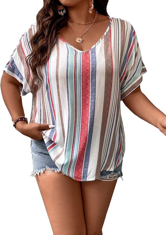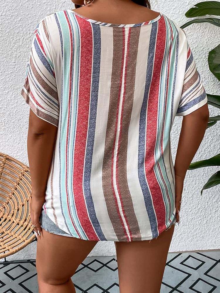 بلوزة صيفية نسائية من SOLY HUX بمقاس كبير ورقبة على شكل حرف V وأكمام قصيرة