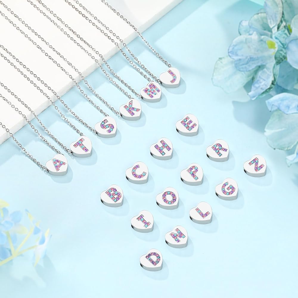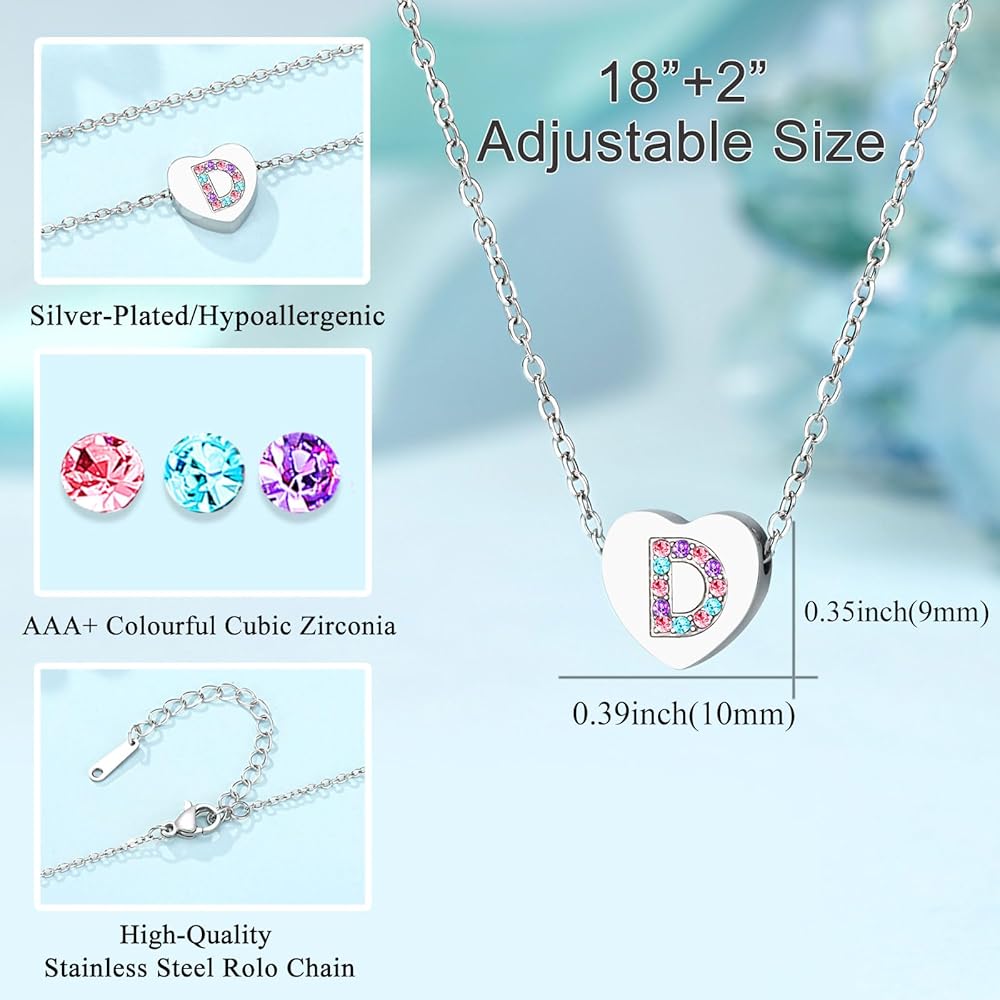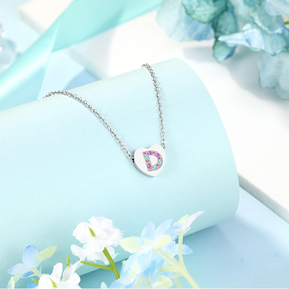 【الخامة】-- قلادة قلب رقيقة من الفولاذ المقاوم للصدأ منقوشة بحروف ومزينة بزركونيا مكعب ملون، جميلة جدًا لجذب عيون الفتيات. مادة خالية من الرصاص والنيكل لا تسبب الحساسية للبشرة الحساسة.