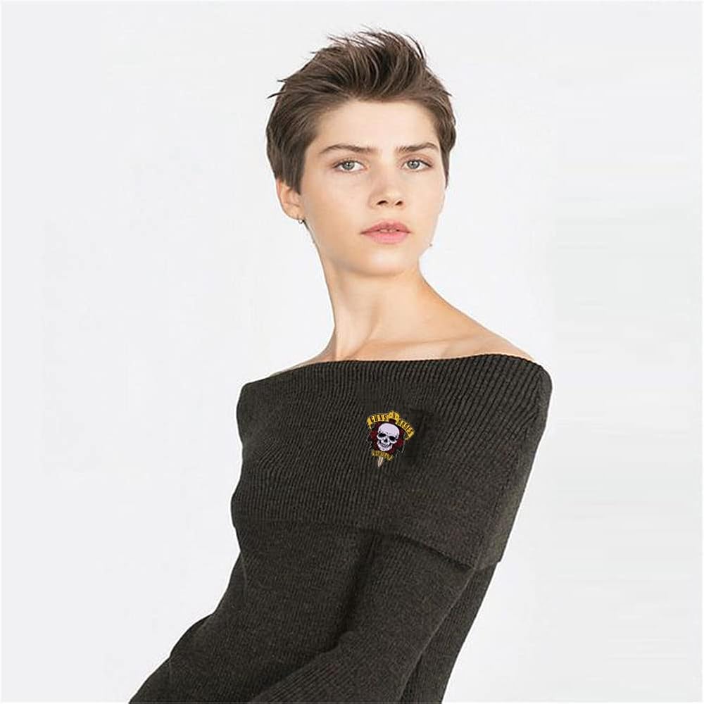 【سهل الاستخدام】دبوس شارة بتصميم جمجمة مسدسات وورد، يحتوي الدبوس على زر في الخلف، ما عليك سوى الضغط على الزر لإزالته، ثم ثقب الإبرة من خلال الملابس، ثم ضع الزر مرة أخرى، وهو مريح جدًا للارتداء.