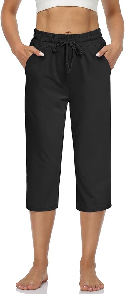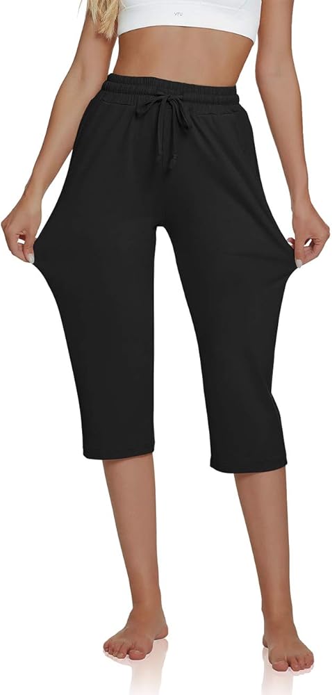بنطال كابري لليوجا مريح برباط من UEU، بنطال رياضي فضفاض للتمارين الرياضية بأرجل واسعة مع جيوب