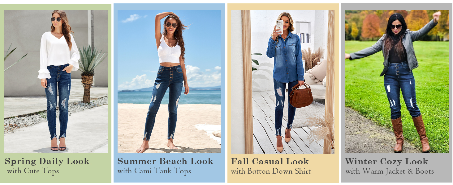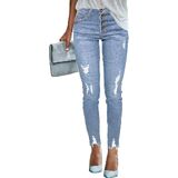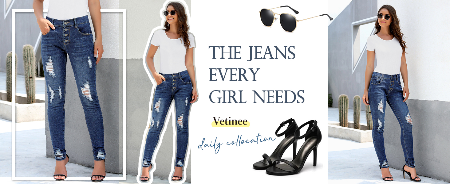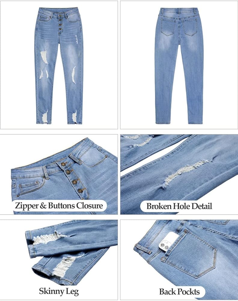 - الجينز النسائي المطاطي سيبقيك تشعر بالنعومة والراحة طوال اليوم، الجينز النسائي ممزق بفتحات مكسورة.