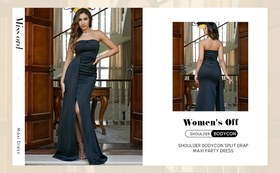 السمات: يتميز فستان الحفلات الرسمي هذا بكشكشة في الأعلى، وغطاء منثني غير متماثل، بدون ظهر، وخصر مرتفع، وفخذ منقسم عاليًا مع حاشية بطول الأرض، مما يُظهر منحنياتك المثالية بأناقة وبريق.