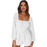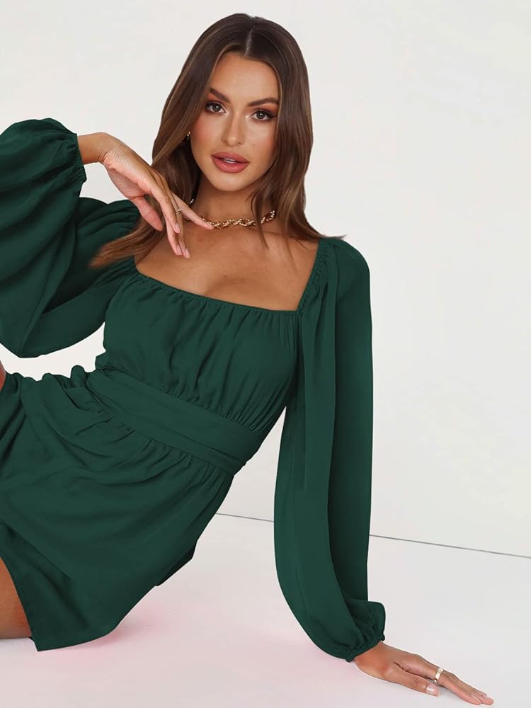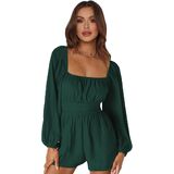 المميزات: أكمام طويلة على شكل فانوس، رقبة مربعة منخفضة، بدون أكتاف، خصر مربوط، لون ثابت، خطوط مرنة وأساور أكمام، بدون ظهر، بذلة قصيرة، سراويل قصيرة للنساء، طول فوق الركبة، خط، مقاس نحيف، رومبر عتيق أنيق.