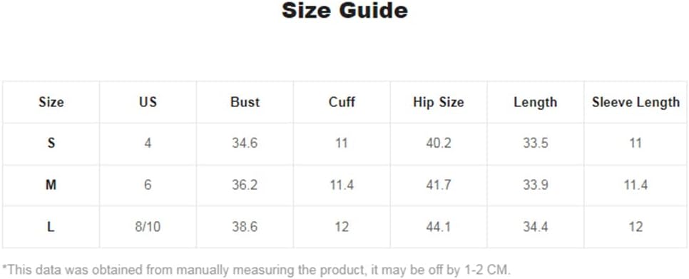 كبير: الصدر: 38.6 بوصة، أساور الأكمام: 12.0 بوصة، مقاس الأرداف: 44.1 بوصة، الطول: 34.4 بوصة، طول الكم: 12.0 بوصة