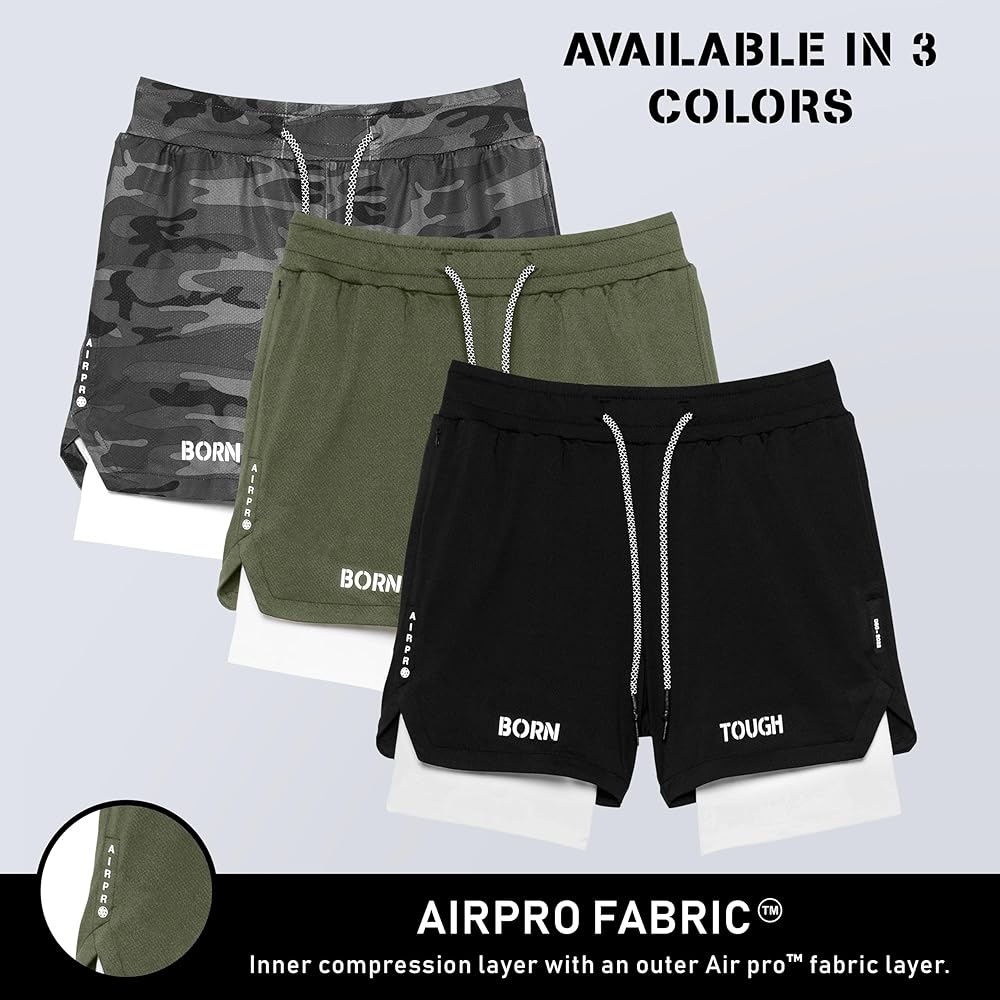 شورت تمرين الصالة الرياضية للرجال من Born Tough، شورت رياضي لكمال الأجسام بطول 5 بوصات للرجال، شورت للجري مع جيب مبطن