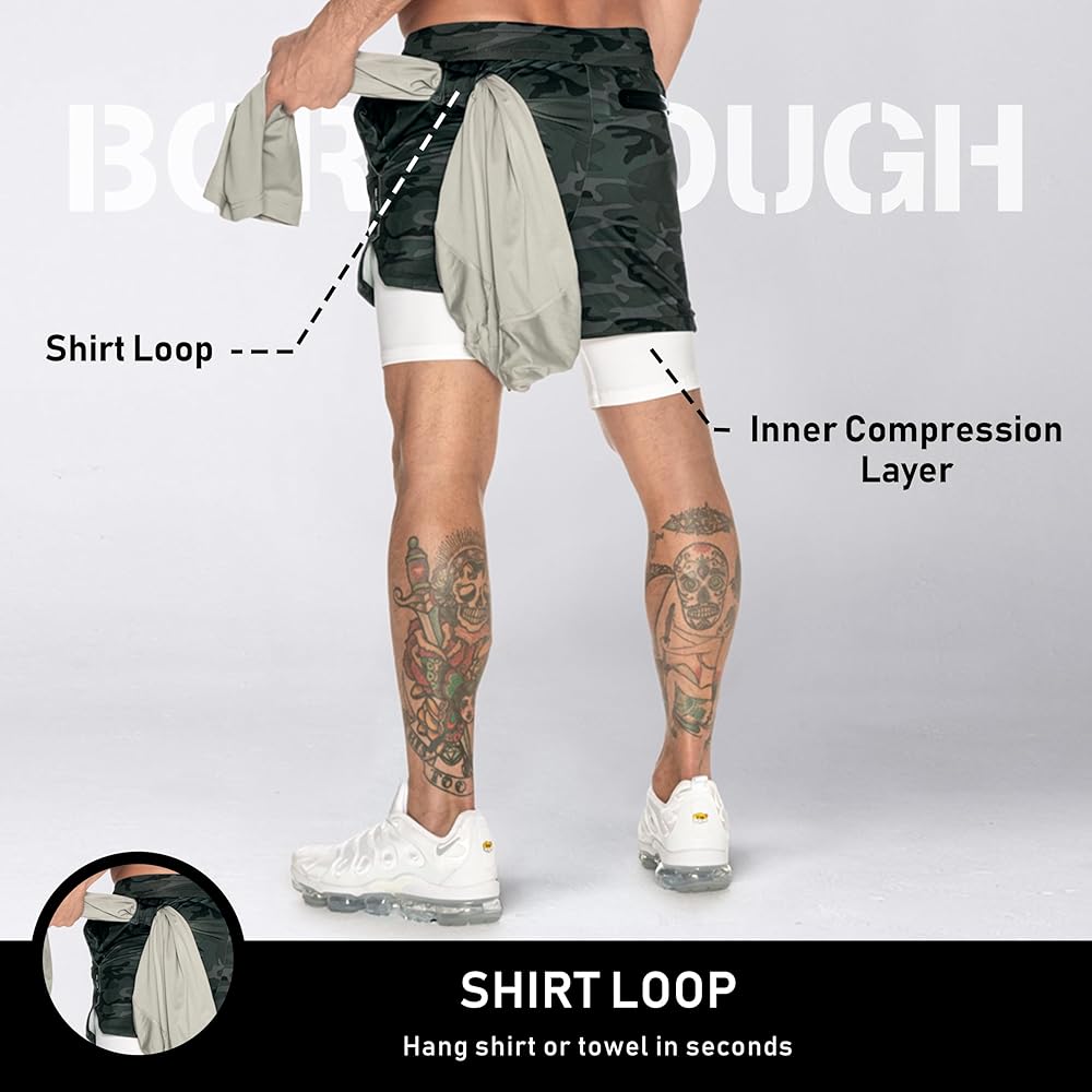 • [حلقة القميص] - شورت التمرين الرياضي Born Tough Air Pro Two-in-One مقاس 5 بوصات للرجال يحتوي على قميص صغير/حلقة خصر على طول الجزء الخلفي من الخصر حيث يمكنك إدخال قميص أو منشفة؛ إذا كنت ترغب في حمل قميص إضافي أو تريد تعليق قميصك المتعرق حتى يجف بعد ممارسة تمارين اللياقة البدنية، فقم بإدخاله في الفتحة؛ إذا كنت ترغب في حمل منشفة يمكنك استخدامها لتجفيف وجهك المتعرق بعد رفع الأثقال وكمال الأجسام.