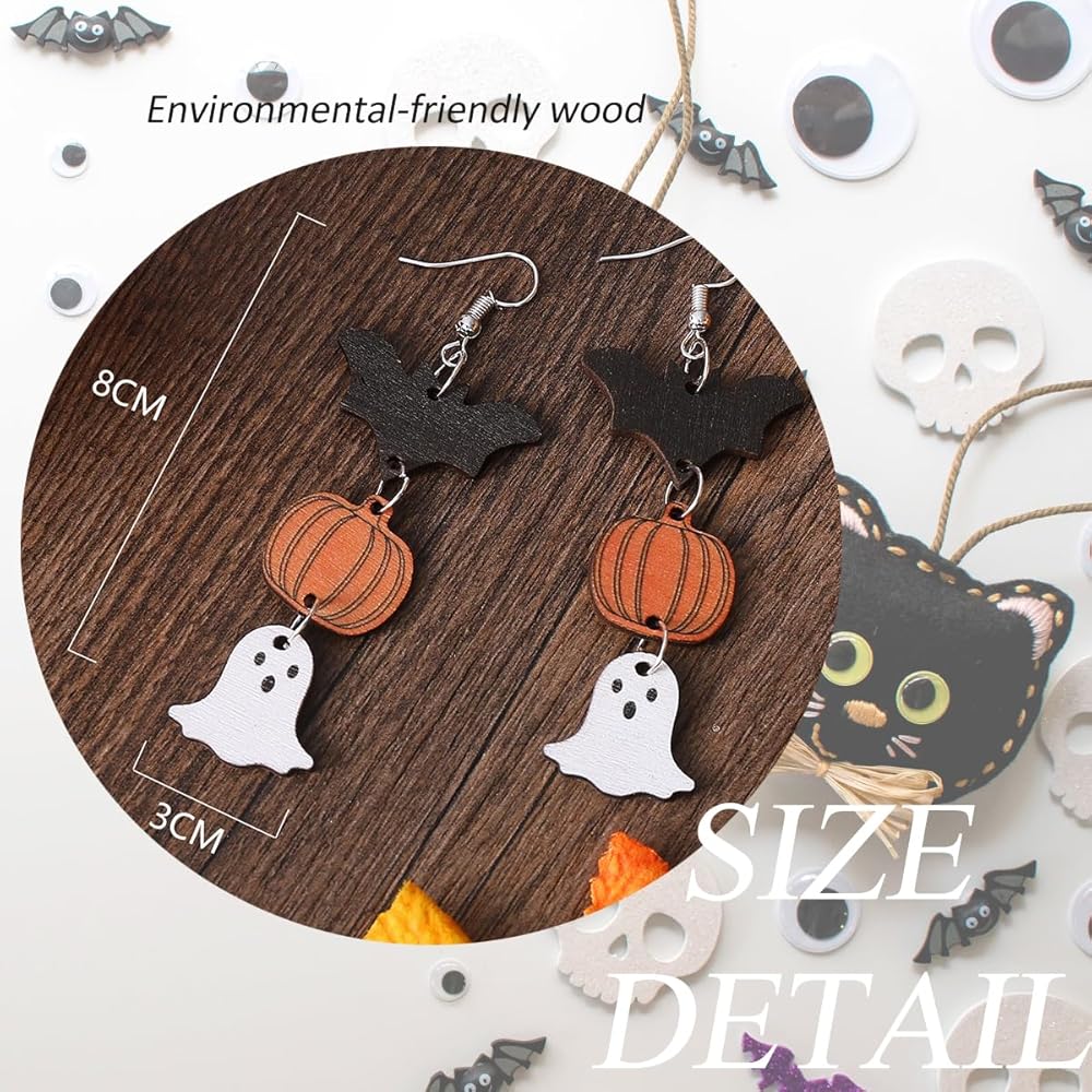🦇خفيفة الوزن ومريحة: مصنوعة من الخشب خفيف الوزن والفولاذ المقاوم للصدأ، هذه الأقراط مريحة للارتداء طوال احتفالات الهالوين. لن تثقل كاهلك، مما يسمح لك بالتركيز على الاستمتاع بالحفلة.