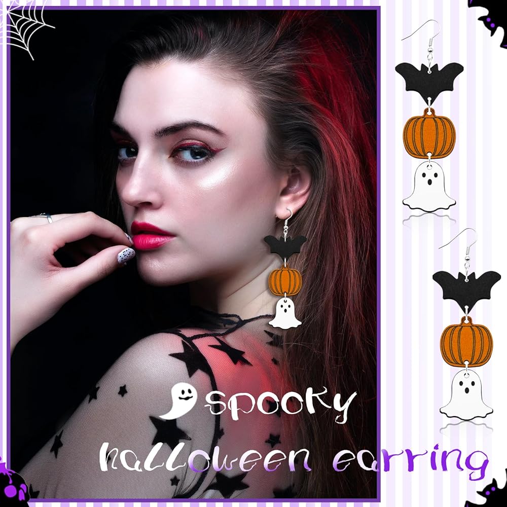 🎃أجواء الهالوين المخيفة: تم تصميم أقراط الهالوين هذه لإضافة لمسة من المرح المخيف إلى حفلة عيد الهالوين الخاصة بك أو أي تجمع بطابع الهالوين. احتضني روح الهالوين مع هذه الأقراط الاحتفالية بأشكال مختلفة.