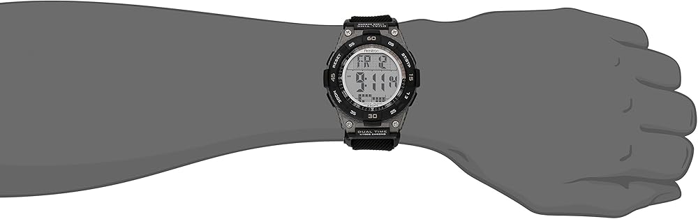 - ساعة رياضية مع حافظة من الراتنج بلون رمادي تتميز بإطار مع رسومات ومينا مع وظائف كرونوغراف