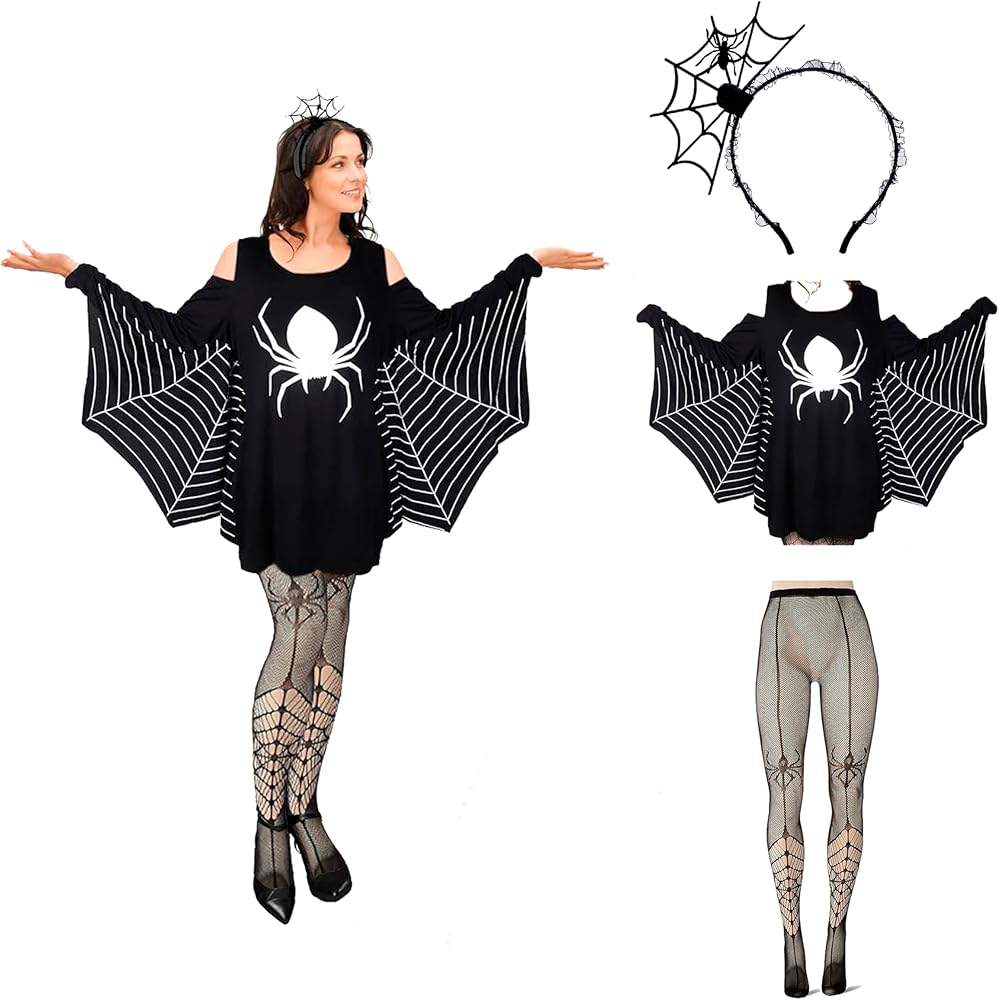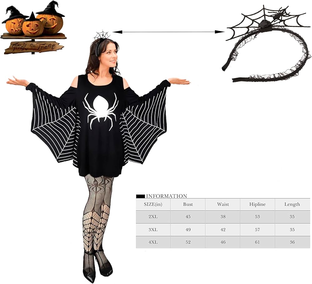 ZANLER 3 قطع زي عنكبوت للنساء للهالوين عصابة رأس سوداء عنكبوت كيب للهالوين فستان سبايدروب فخذ عالي طويل بالإضافة إلى حجم ملابس عنكبوت الهالوين للنساء والفتيات والحفلات التنكرية (XXXL)