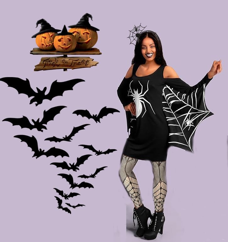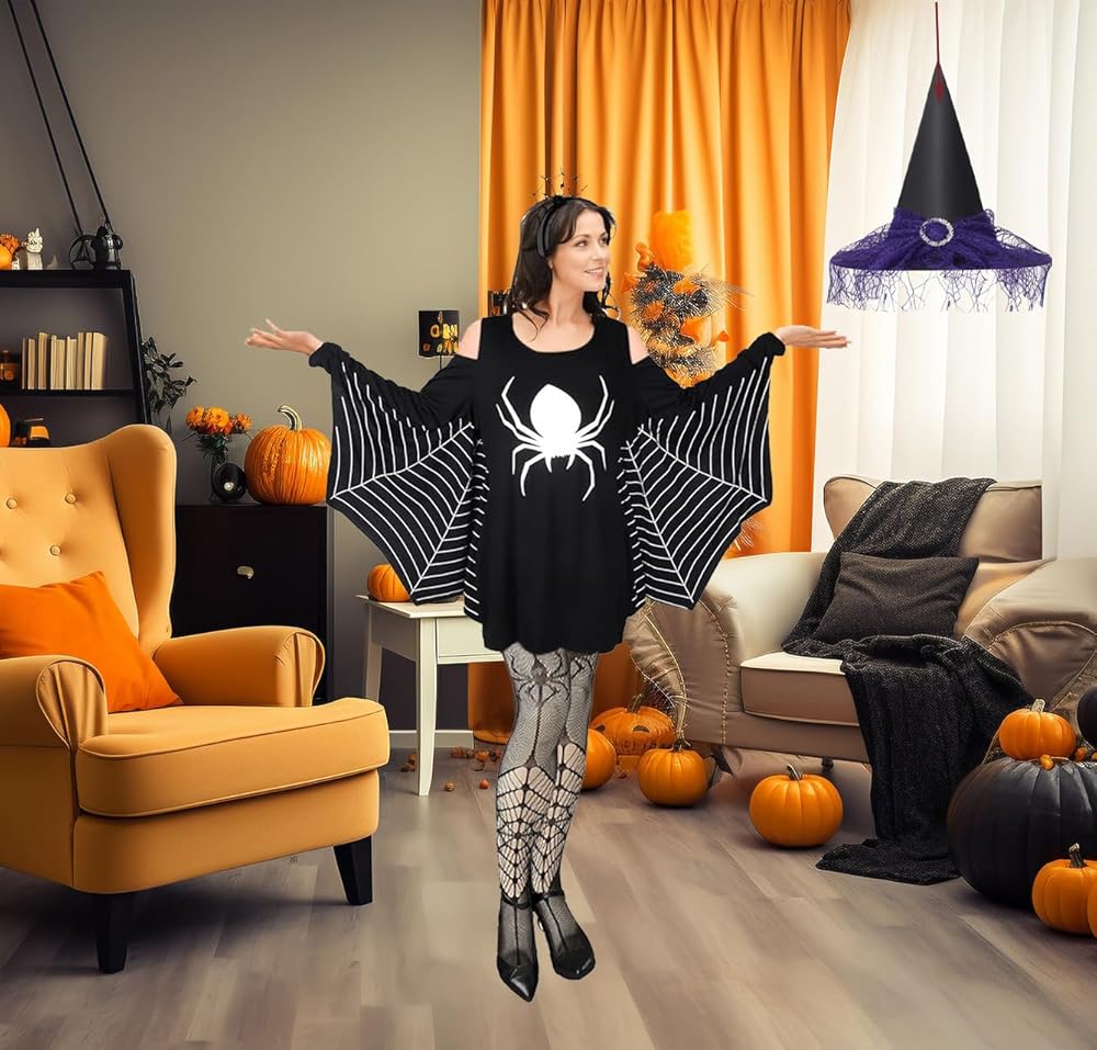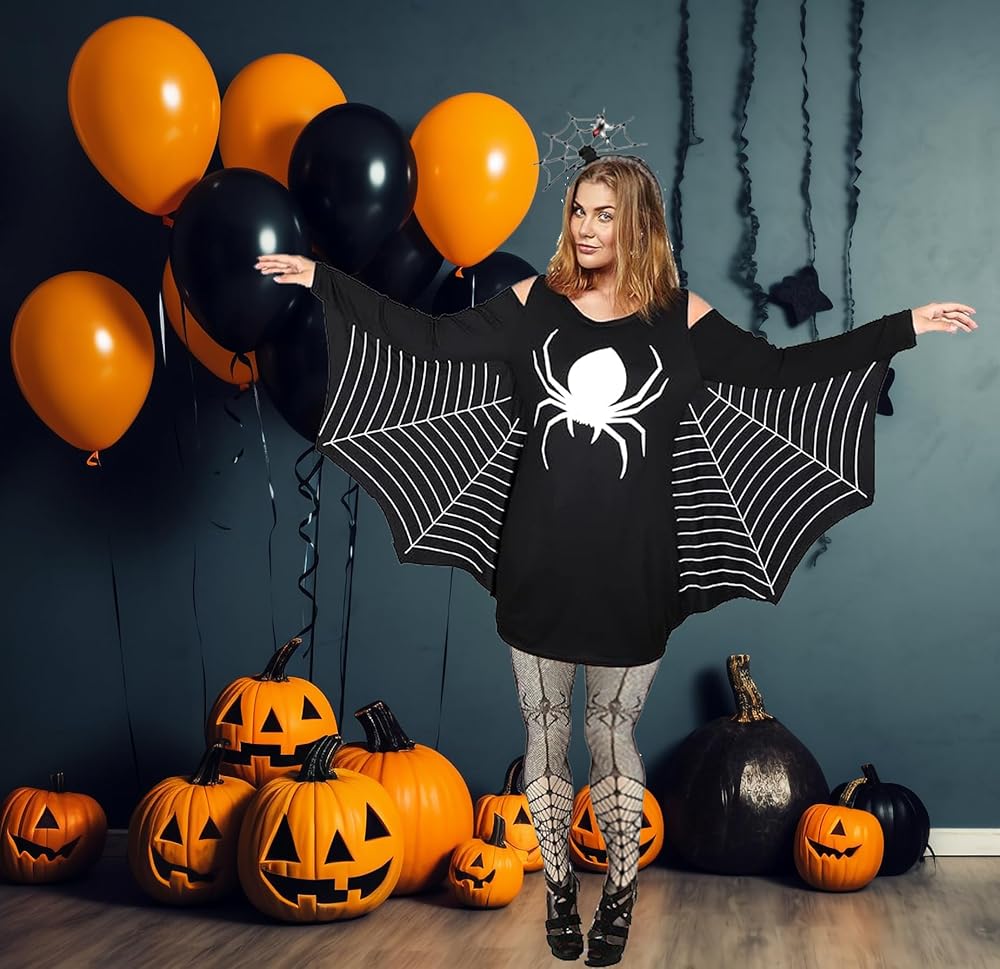تصميم مثير للاهتمام: حافظ على الأشياء أنيقة في هذا الموسم المخيف مع فستان زي شبكة العنكبوت. يتميز زي الهالوين الكاجوال هذا بفستان على شكل سويت شيرت من الجيرسي مع جزء علوي بدون أكتاف وتصميم فانوس جاك. تتميز إكسسوارات العنكبوت هذه للنساء بشبكات العنكبوت وأنماط العنكبوت، مما يجعل الأزياء تبدو مميزة ولافتة للنظر، سوف تعجبك أكثر جذابة في الحفلات