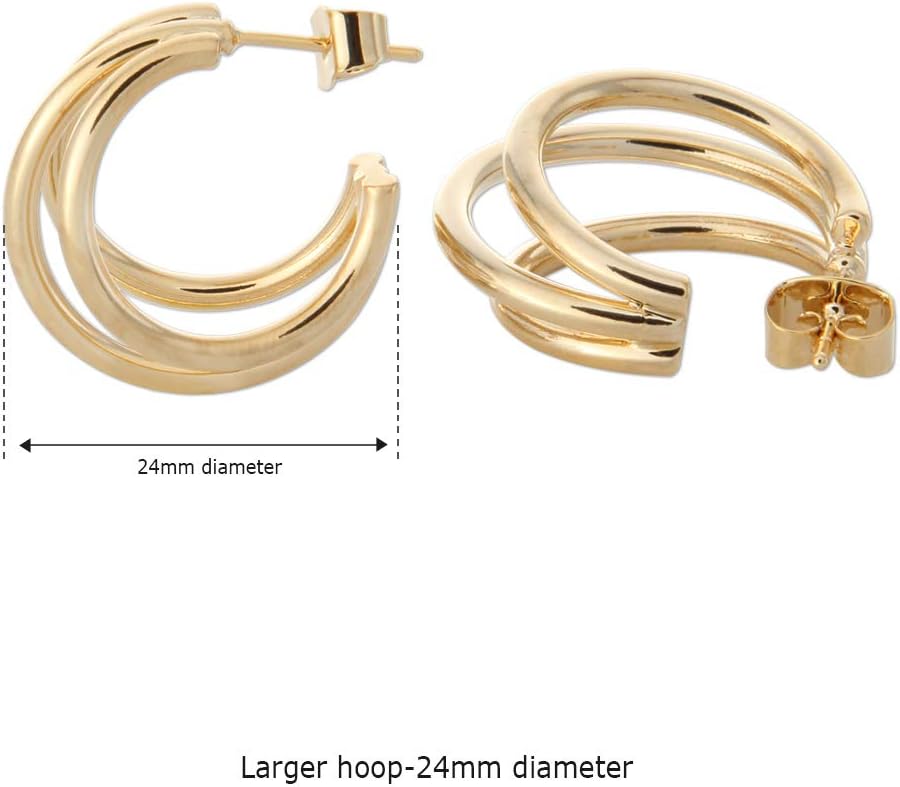 أقراط هوجي سبليت مطلية بالذهب عيار 14 قيراط | أقراط ثلاثية للنساء