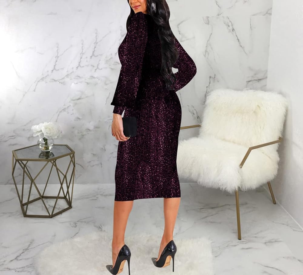 المناسبة: فستان أنيق لامع مناسب لمختلف المناسبات، رائع للارتداء اليومي، والحفلات الراقصة، والنوادي، والسفر، والحفلات، وحفلات المكتب، وحفلات الكوكتيل، وحفلات رأس السنة الجديدة، وعيد الميلاد، وعطلات الكريسماس وما إلى ذلك. مثالي للخريف/الشتاء/ الربيع. مع هذا الفستان الكلاسيكي اللامع، ستكونين ملكة مشرقة في النادي.