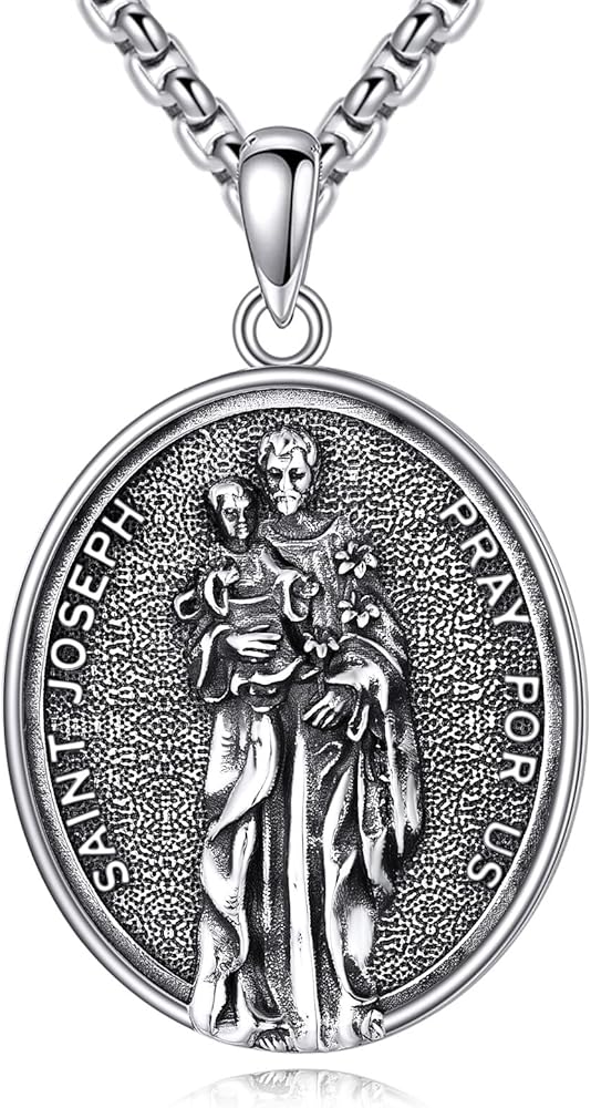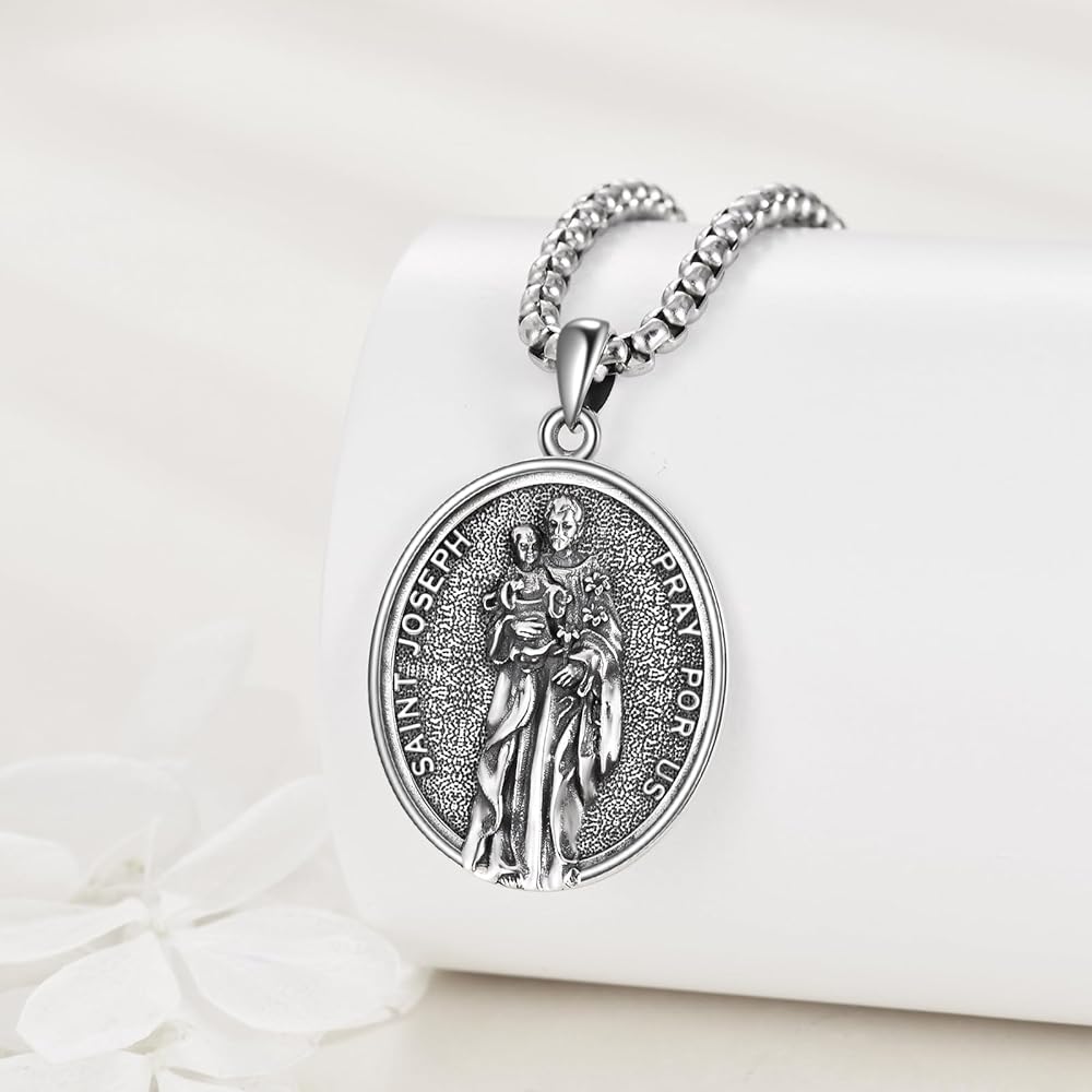 💎 MATERIAL: Saint Joseph pendant is made of hypoallergenic sterling silver, which is nickel-free, lead-free, and cadmium-free, making it perfect for those with sensitive skin. The chain is made of stainless steel.