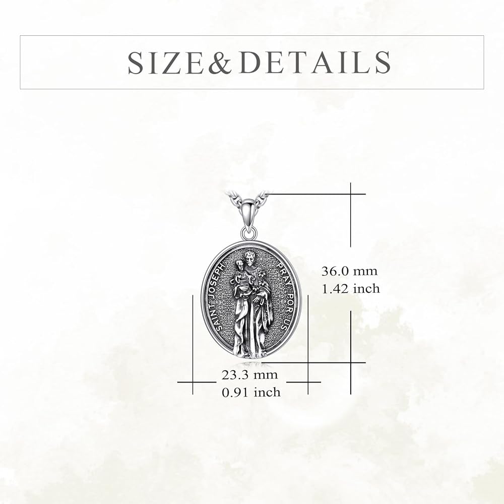 📏 PERFECT SIZE: The silver St. Joseph jewelry measures 1.42*0.91 inch (36.0*23.3 mm), the length of silver chain: 20+2 inch.