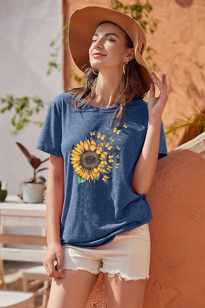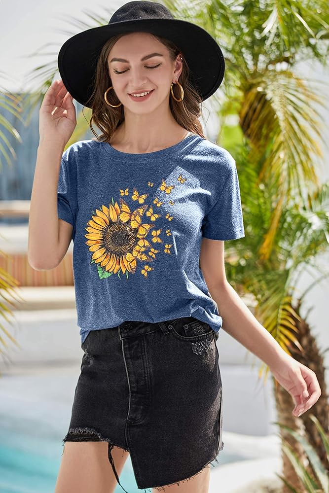 • هدية مثالية: هذه القمصان النسائية ذات الرسومات عباد الشمس هي هدية مثالية لنفسك/صديقتك/صديقتك/زميلتك في الصف/الأم/الأخت/الجدة أو أي سيدة من جميع الأعمار.