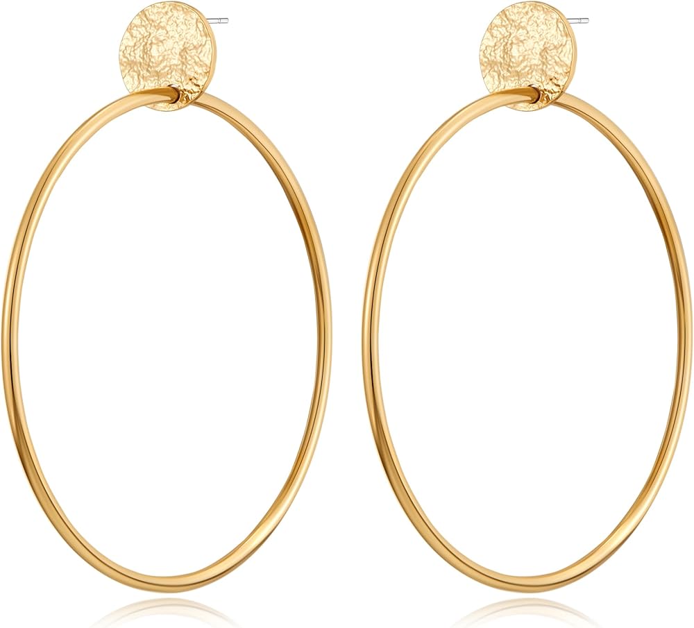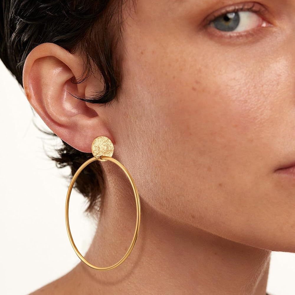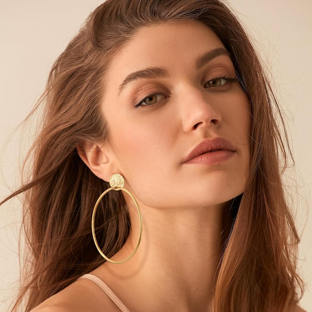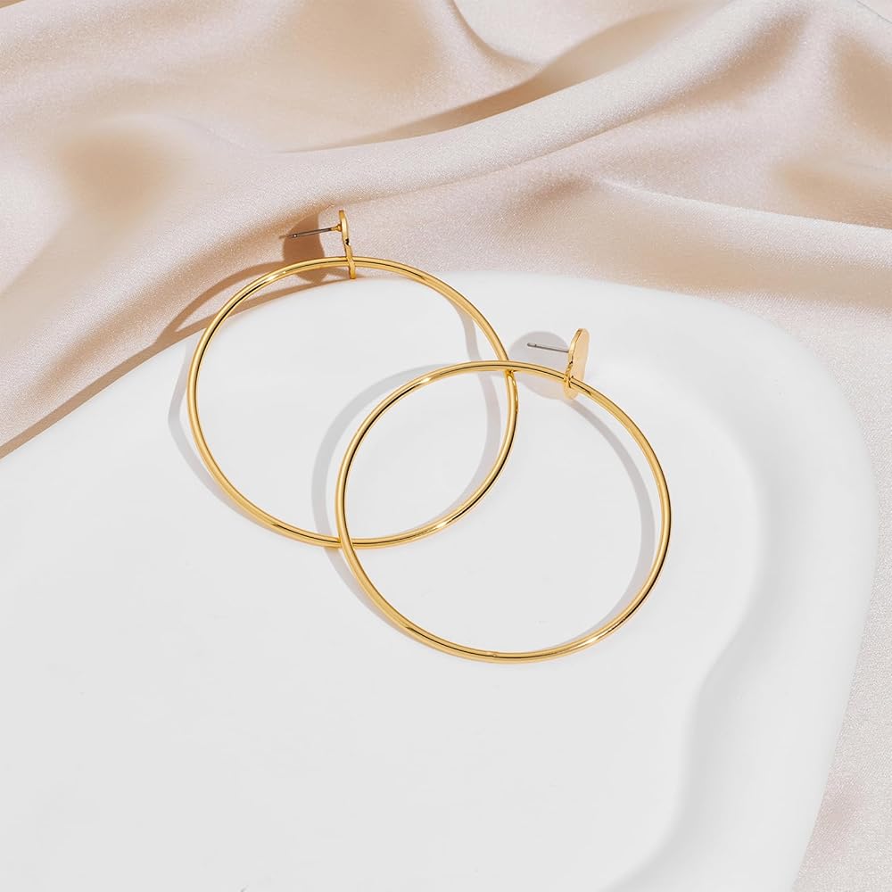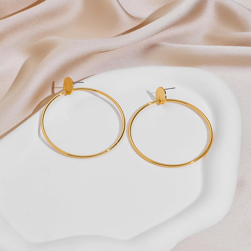 • GOLD HOOP EARRING: Women's hoop earrings feature stylish and minimalist design. which are original enough to be timeless. Wearing large circles earrings adds a touch of luxury to your appearance and personality, making you look more elegant and charming, and you will receive a great deal of compliments.