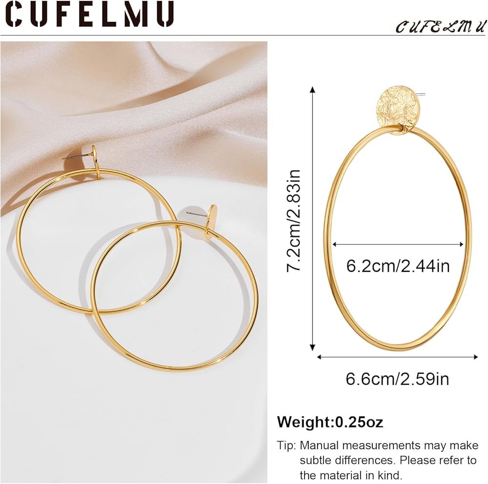 • EARRING SIZE: Gold big hoop earrings is approx. 2.45 inches/ 6.2cm in inner diameter. It is easy and convenient for you to put them on or take them off. This pair of big gold hoop earrings are an indispensable addition to your jewelry collection. which will be easy to match with most of your daily outfits.