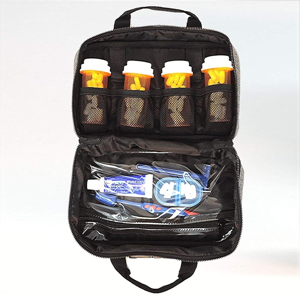 راحة البال: أثناء السفر، يجب أن تظل بعض الأغراض الشخصية خاصة وغير متاحة لأي أشخاص غير مرغوب فيهم. تعمل حقيبة السفر على حل هذه المشكلة من خلال قفل بسحاب فريد من نوعه من إدارة أمن المواصلات (TSA) والذي يؤمن ممتلكاتك. مثالية لتخزين الأدوية، سواء بوصفة طبية أو بدون وصفة طبية، بالإضافة إلى أدوات النظافة الأخرى وأدوات غرفة النوم.
