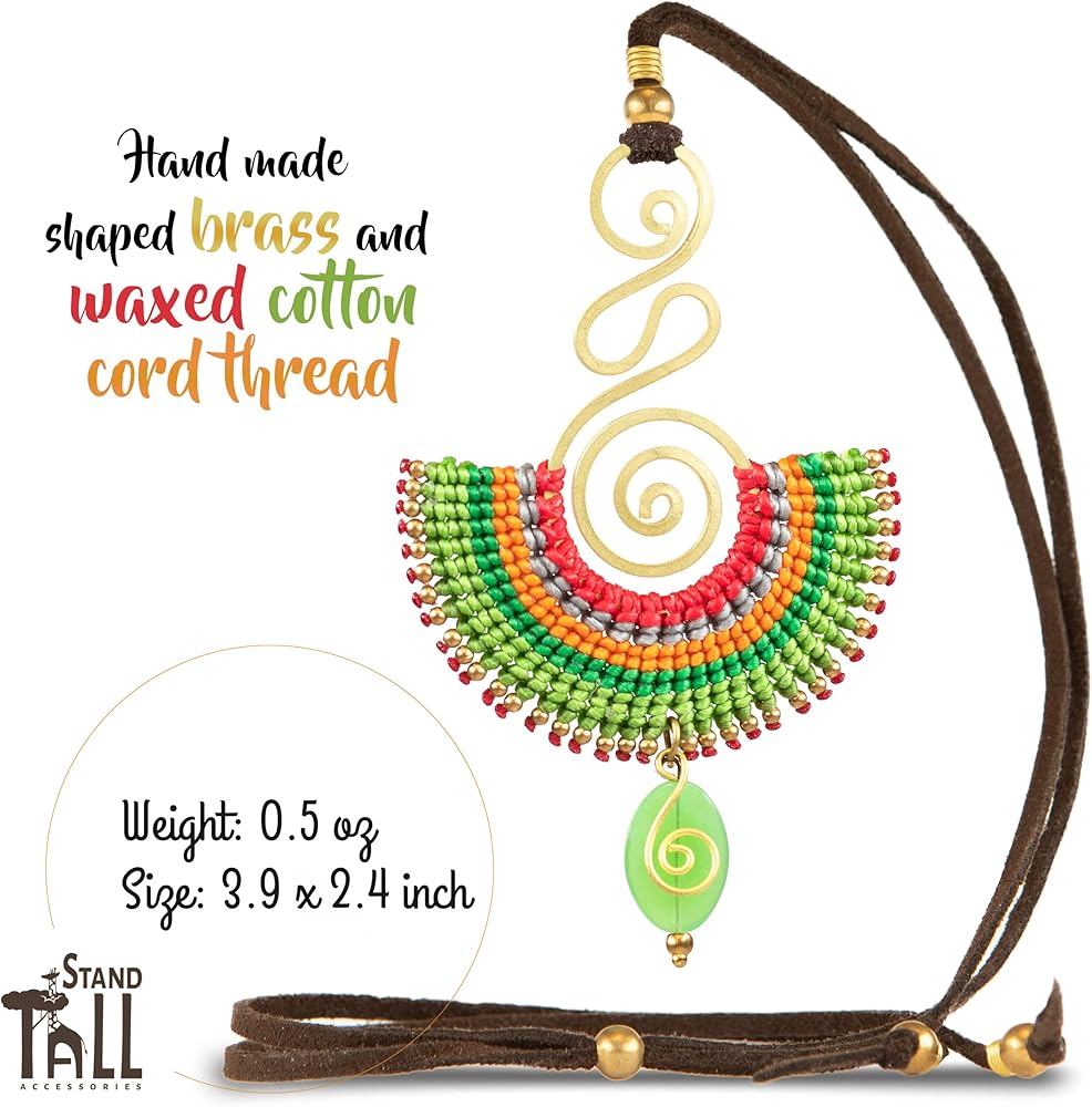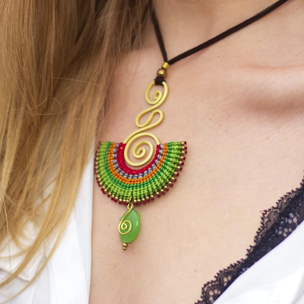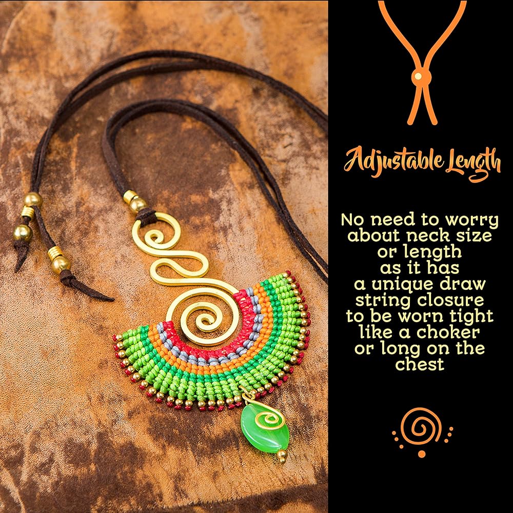❣️ صنعة متقنة مصنوعة من مواد متميزة للاستخدام طويل الأمد! قلادة خالية من النيكل، مصنوعة من النحاس وخيوط ملونة من القطن المشمع تنتهي بشكل جميل بالكريستال الطبيعي، وكلها موضوعة على خيط من الجلد الصناعي. لا داعي للقلق بشأن حجم الرقبة أو طولها لأنها تحتوي على رباط إغلاق فريد يمكن ارتداؤه بشكل ضيق مثل القلادة أو طويل على الصدر