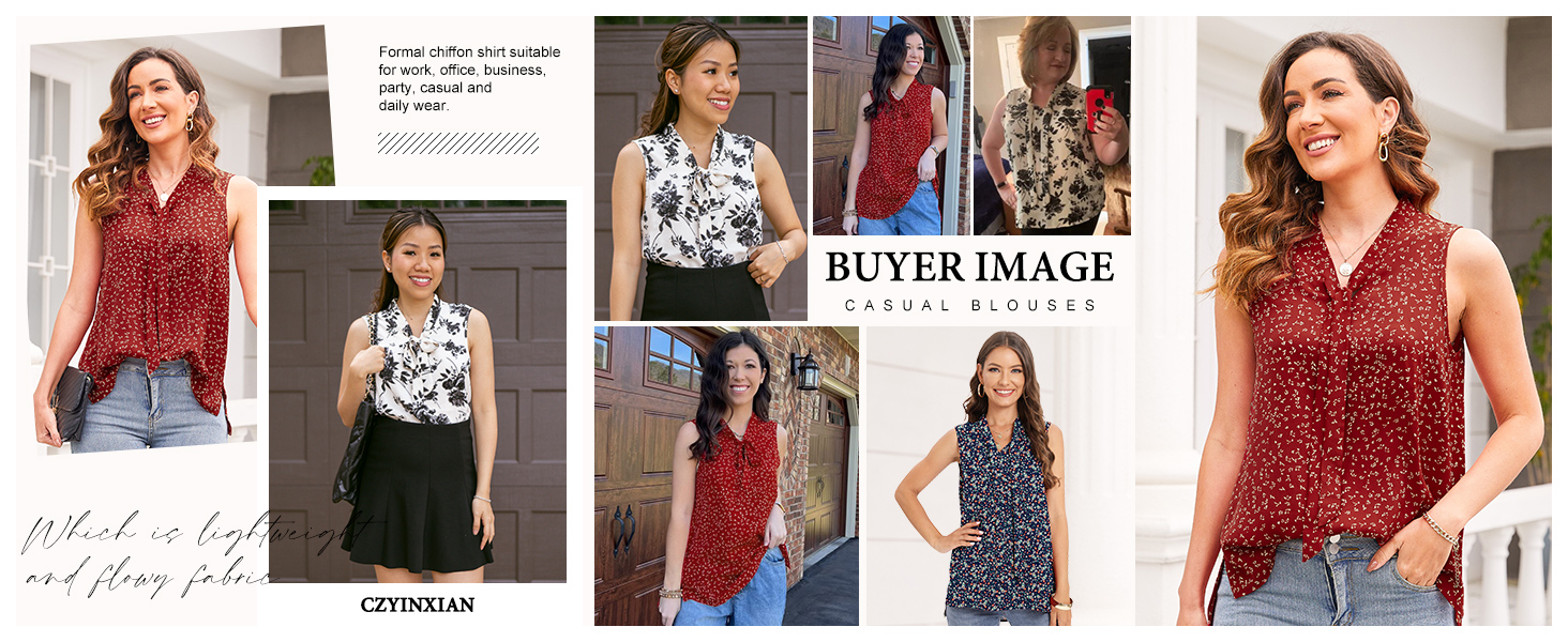 نسيج شيفون مريح: هذه البلوزات الشيفون بدون أكمام للنساء مصنوعة من 95% بوليستر، 5% ألياف لدنة، وهو نسيج خفيف الوزن ومتدفق يوفر شعورًا مريحًا ومساميًا، مما يجعله خيارًا مثاليًا للطقس البارد.