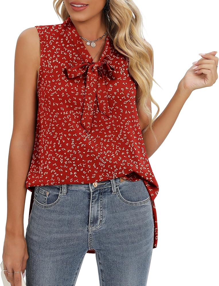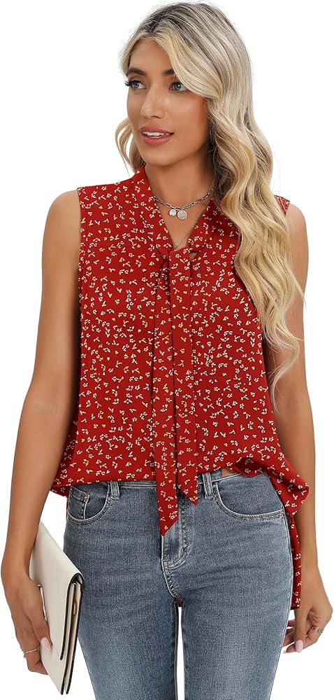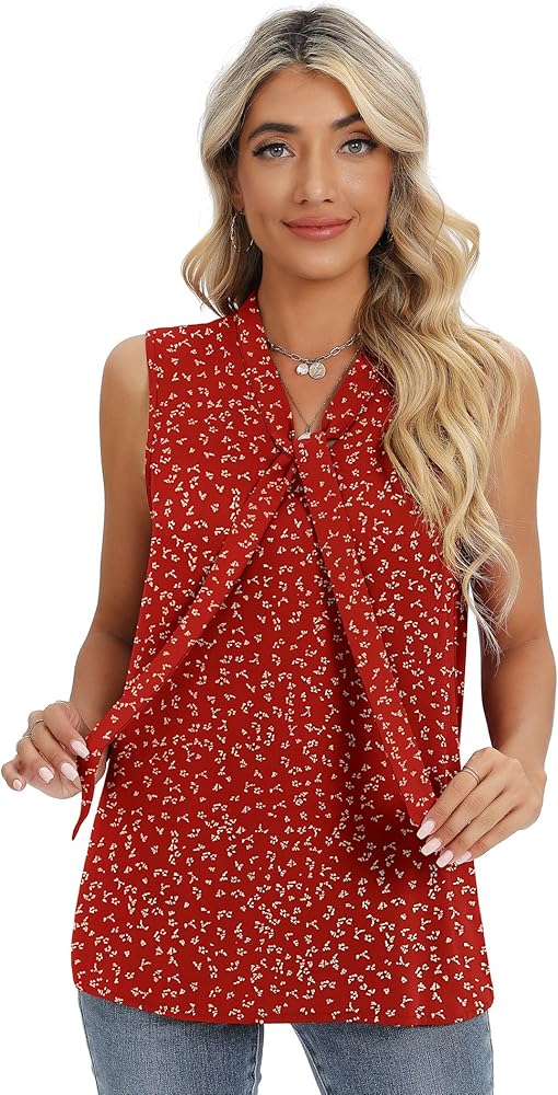 تصميمات كلاسيكية: بلوزة شيفون للسيدات، بلوزات شيفون نسائية للعمل الاحترافي، قميص علوي برقبة على شكل فيونكة، قميص بلوزة بدون أكمام، بلوزة أنيقة برقبة مربوطة، بلوزة كاجوال فضفاضة. سيكون مثاليًا لخزانة ملابسك.