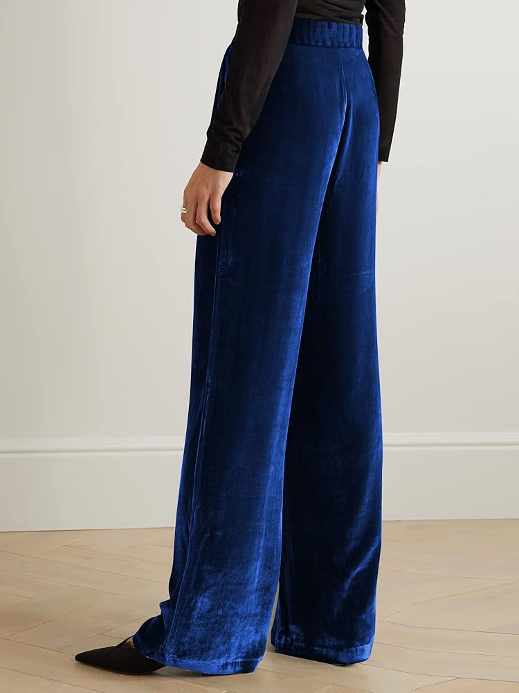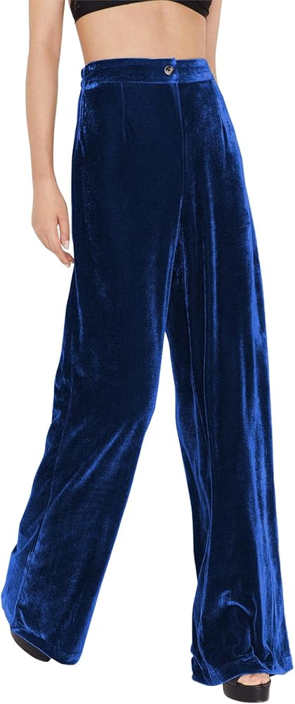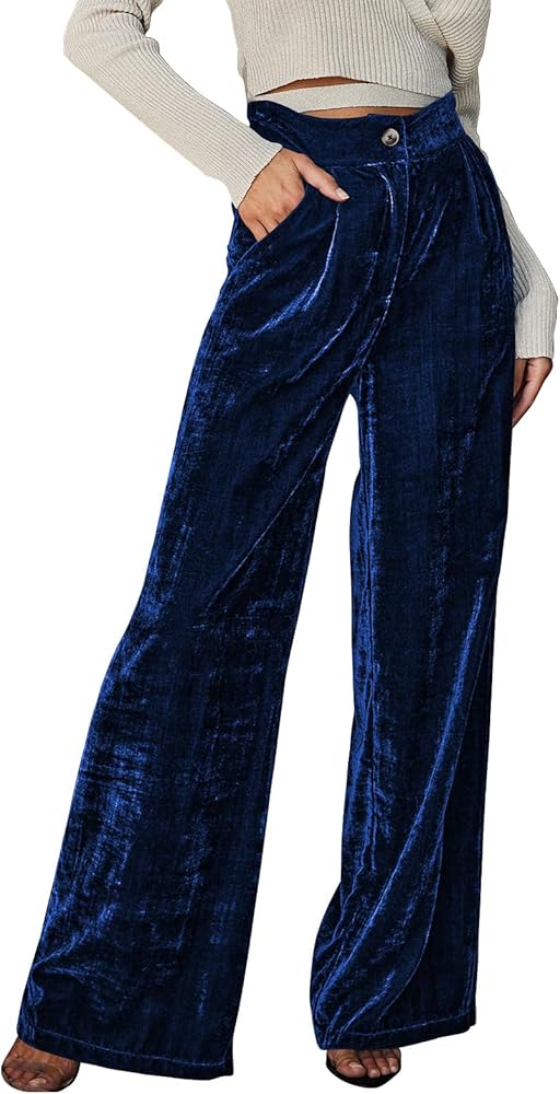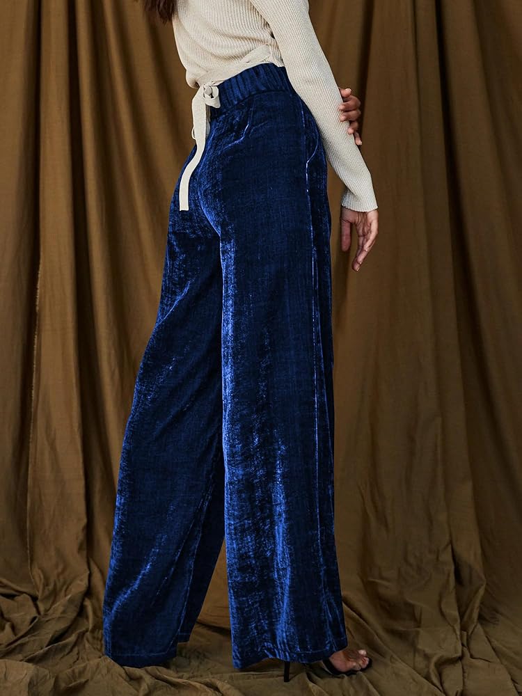 سروال مخملي للنساء من فايبل، سروال بالازو بخصر مرتفع وارجل واسعة، ملابس كاجوال طويلة فضفاضة مع جيوب