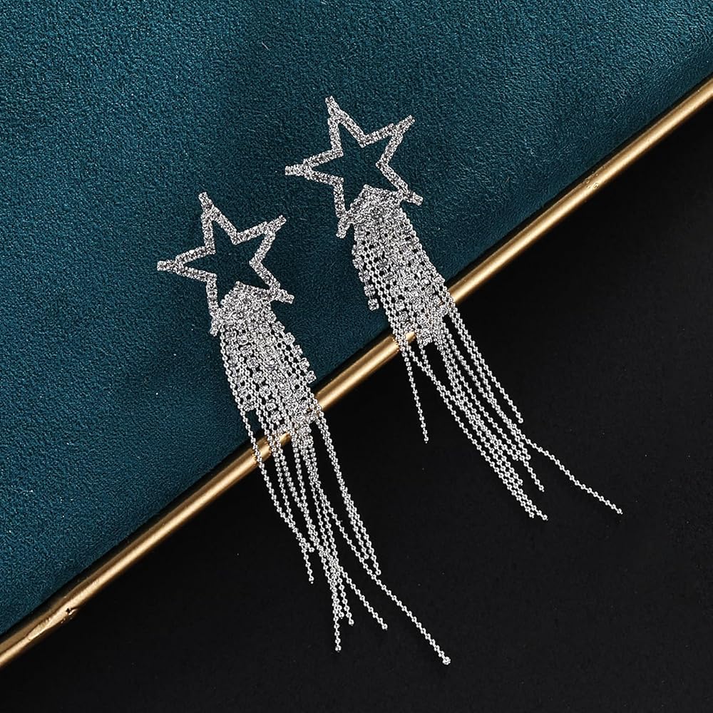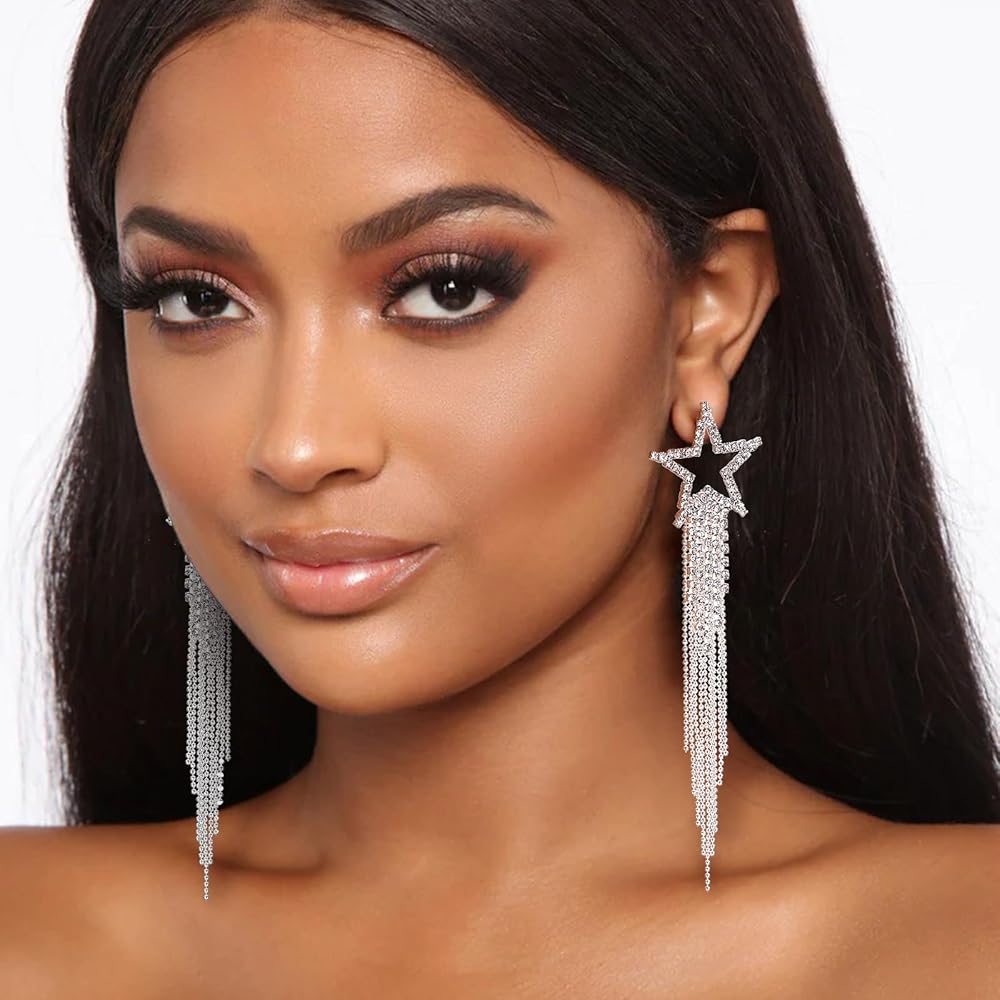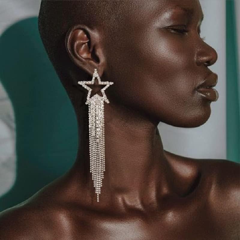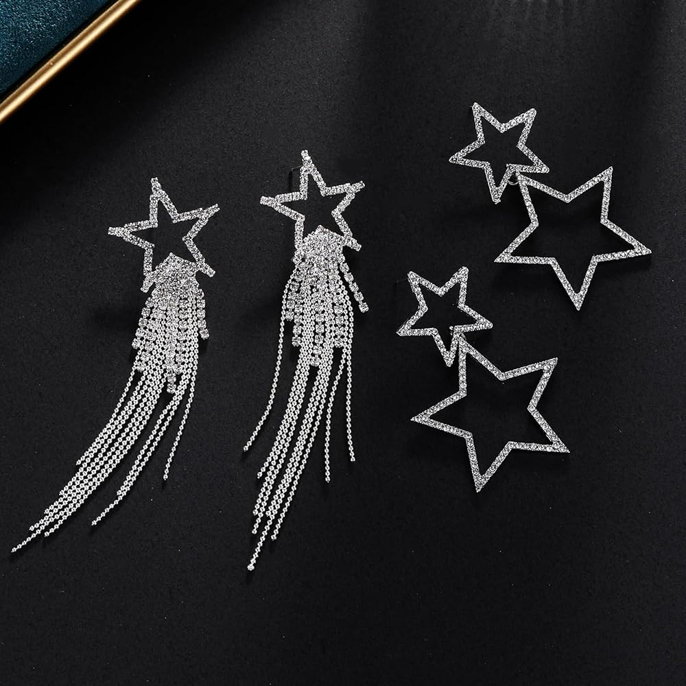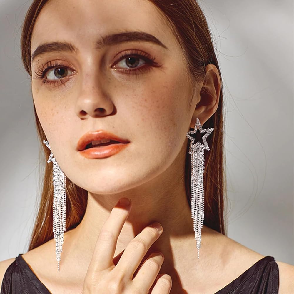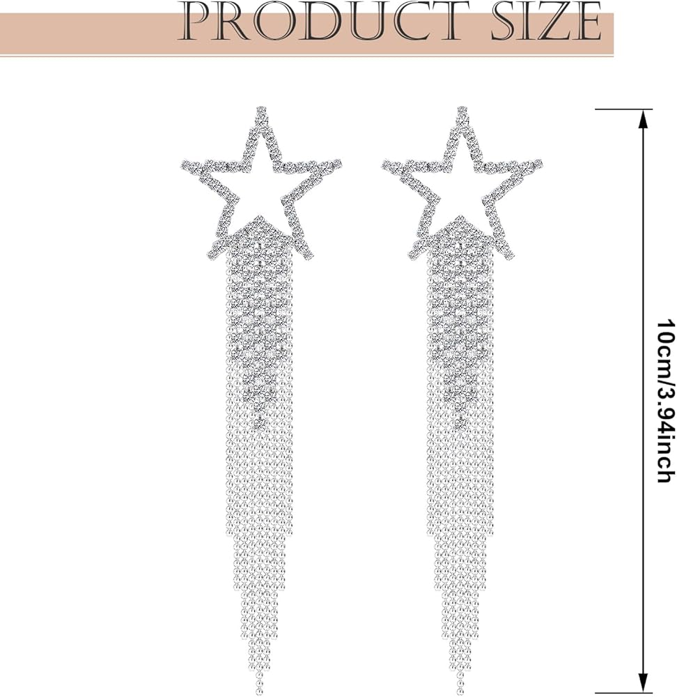 تصميم رائع: تتميز أقراطنا المصنوعة من حجر الراين للسيدات بشكل نجمة مع شرابات كريستال متدلية. سوف تلتقط أحجار الراين المتلألئة الضوء وتعكس الضوء الجميل والمبهر للحصول على مظهر أنيق. خذها وكن شخصًا آخر.