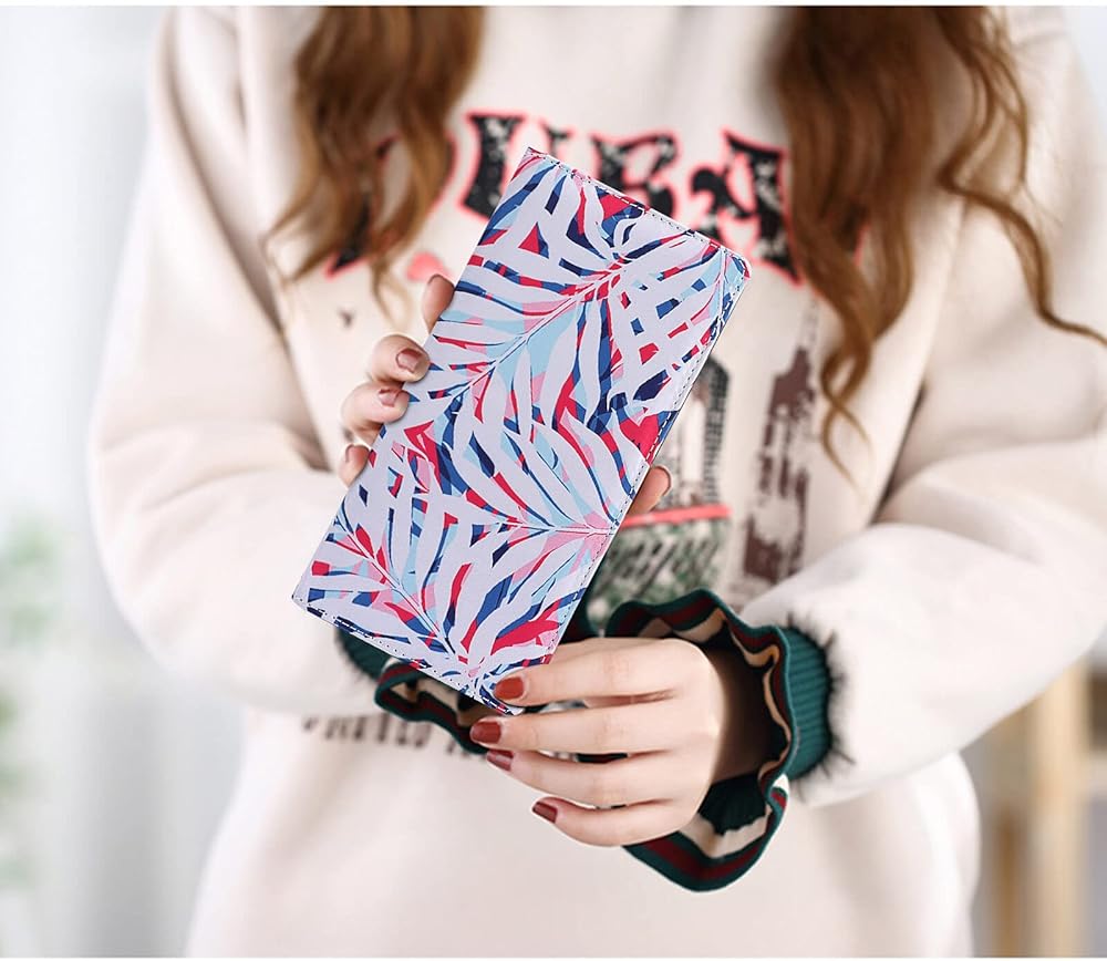 ☆☆نمط الموضة والتصميم--نمط الزهور/أوراق الشجر، لون جديد، هذه المحفظة الجلدية النسائية خفيفة الوزن وسهلة الحمل، ويأخذ المظهر النحيف مساحة صغيرة جدًا من محفظتك.