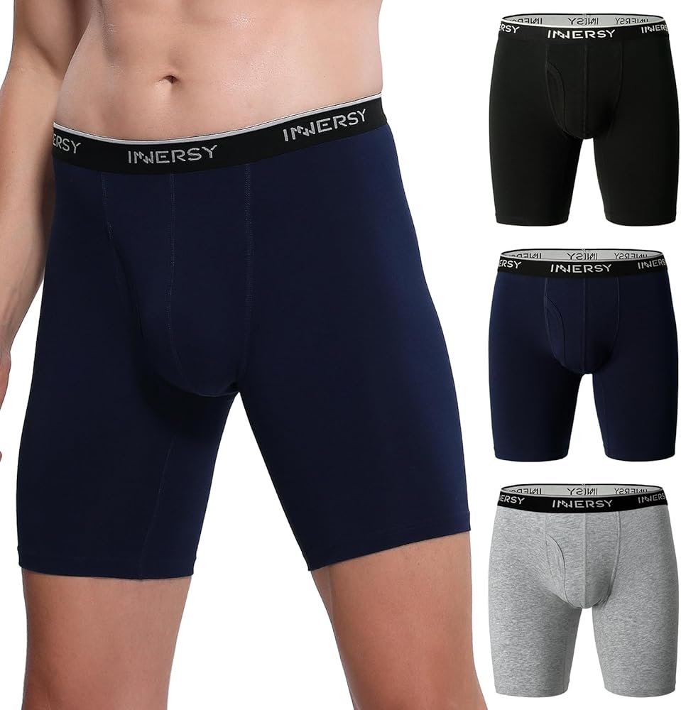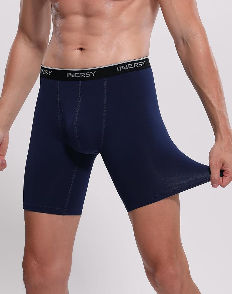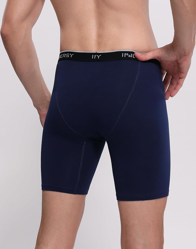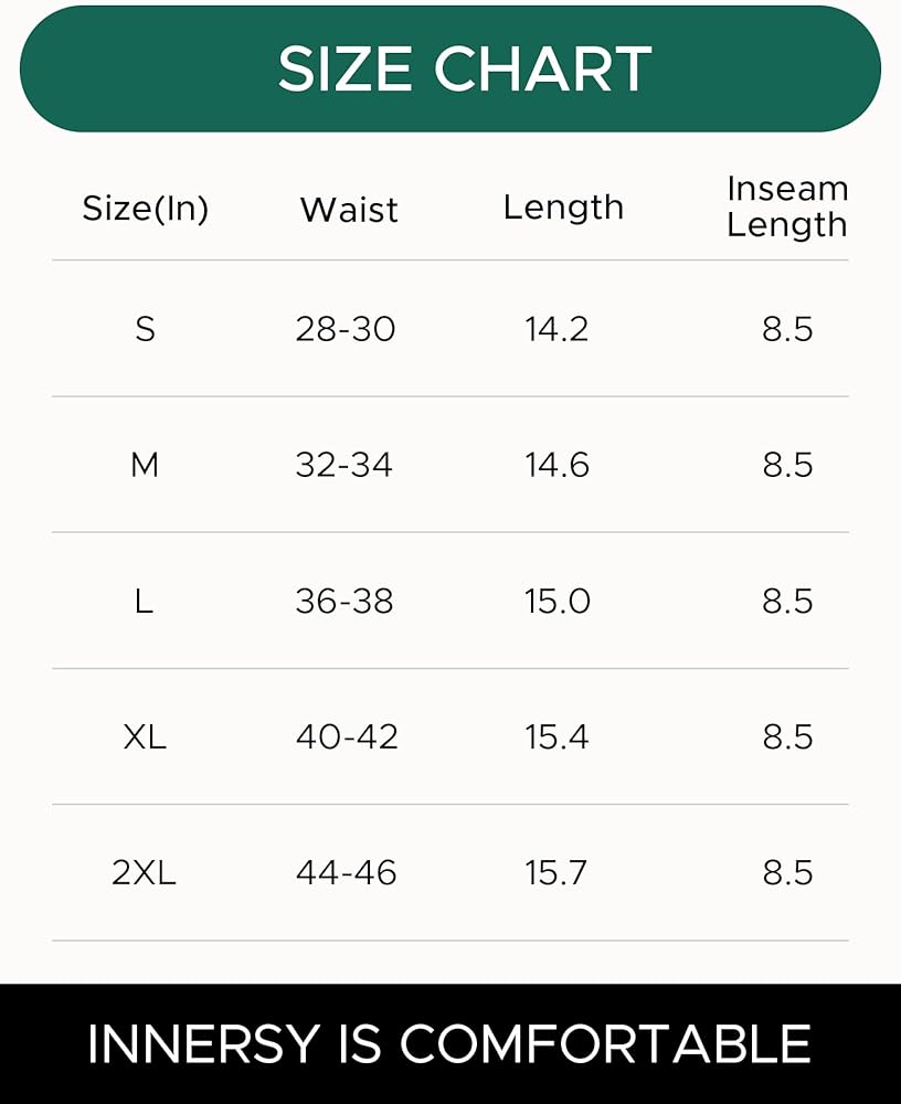 تصميم خط ساق أطول: مع خط ساق أطول (طول الدرزة الداخلية 8.5 بوصة) يكون منخفضًا على الفخذ، وهو الطول المثالي للتغطية والراحة. طول مثالي للسراويل الداخلية على طراز الملاكم، ويحافظ على جلد الساقين منفصلين ويمنع احتكاك الفخذ.