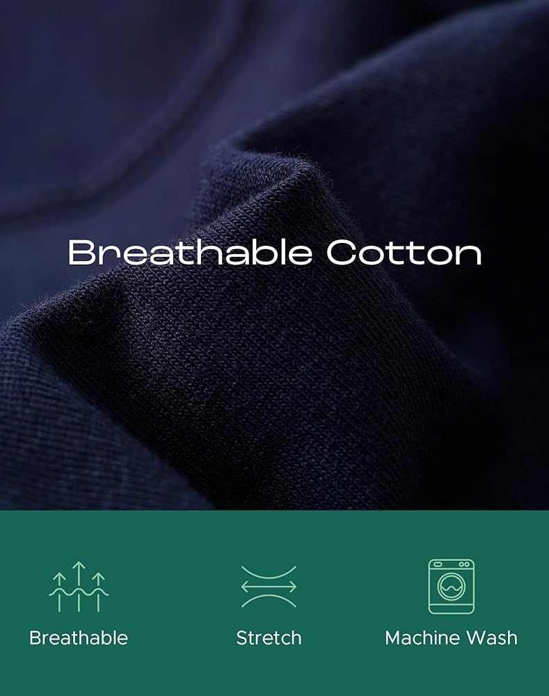 نسيج عالي الجودة: تنفس من الطبيعة، مريح ومسامي، ماص للرطوبة، يبقيك منتعشًا طوال اليوم، مناسب جدًا للمنزل وممارسة الرياضة والسفر والأنشطة اليومية الأخرى