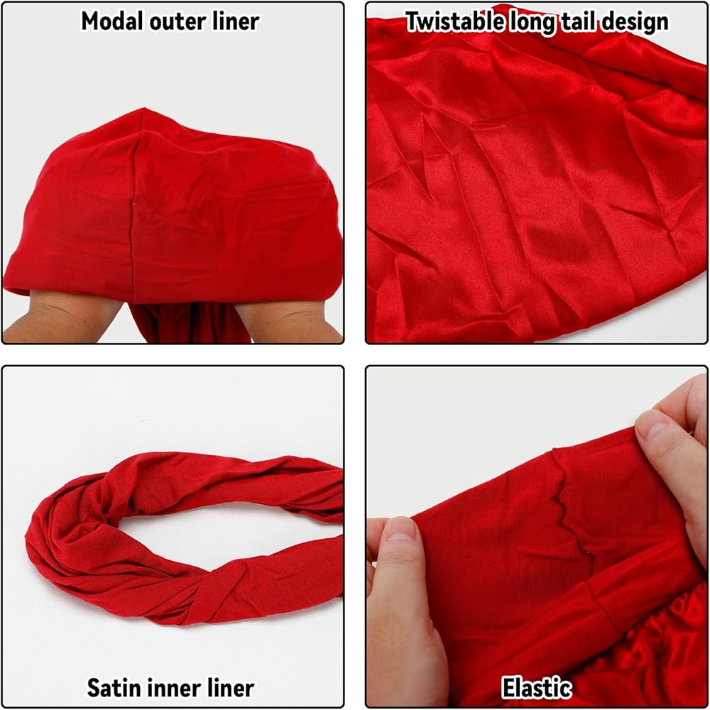 【Packaging Include】You will get 3 pieces of turban durag for men in 3 different colors: black, grey, light red, high quantity to meet your daily and replacement needs, the different colors can well match with your various outfit, add a little something special to your outfit.
