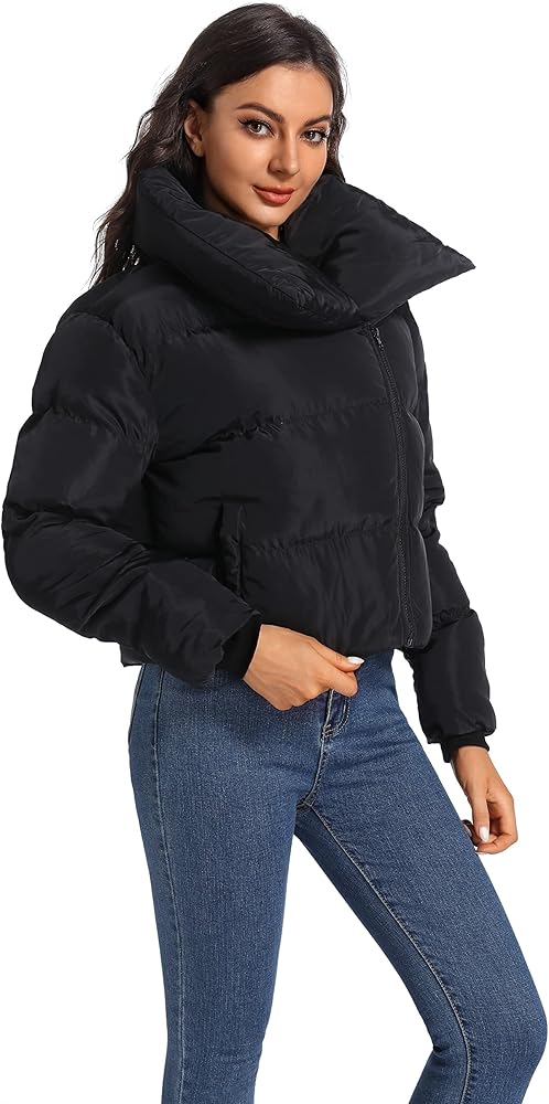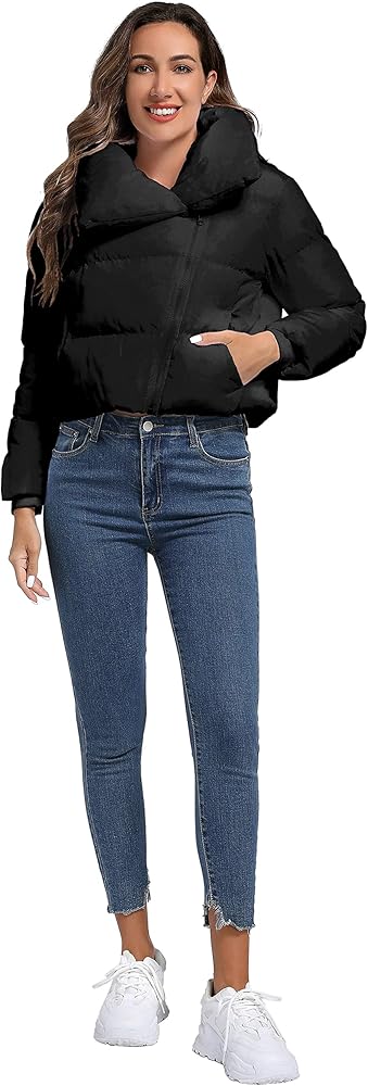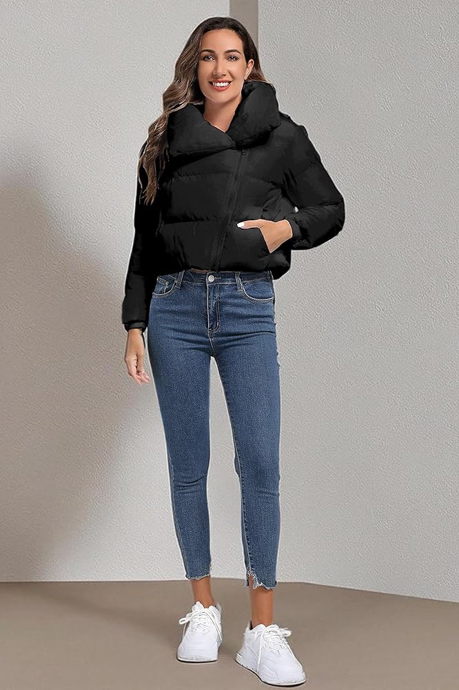 ✿ المميزات: سترة منتفخة قصيرة مع ياقة مطوية لأسفل، ارفع الياقة إلى البرد عند الحاجة، ويمكن أيضًا قلب الياقة لأسفل للحصول على مظهر آخر، سترة منتفخة مع فتحة سحاب غير متماثلة فريدة من نوعها، مظهر قصير عصري، جيوب بحاشية على الجانبين، طويل أكمام مع أطراف أكمام مضلعة تجعلك تشعر بالدفء في الطقس البارد