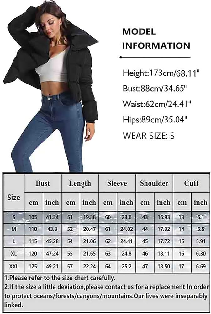 ✿ النمط/المقاس: لون موحد/ طراز كلاسيكي/ مقاس كبير/ سترة منتفخة قصيرة. XS=الولايات المتحدة (1-2)، S=الولايات المتحدة (4-6)، M=الولايات المتحدة (8-10)، L=الولايات المتحدة (12-14)، XL=الولايات المتحدة (16-18)، نصائح مهمة: مقاس نحيف ، يرجى اختيار مقاسين أكبر لارتداء أكثر راحة!