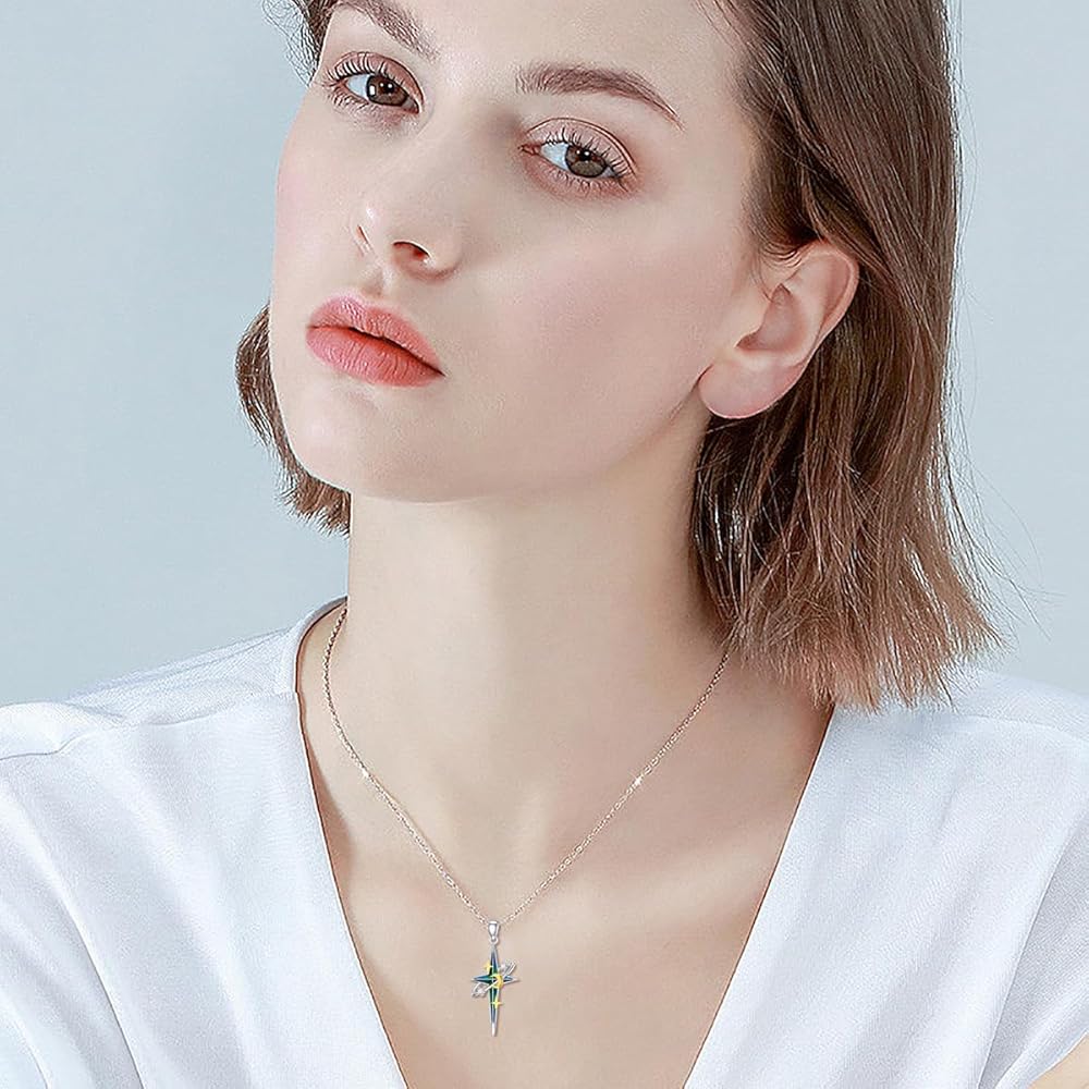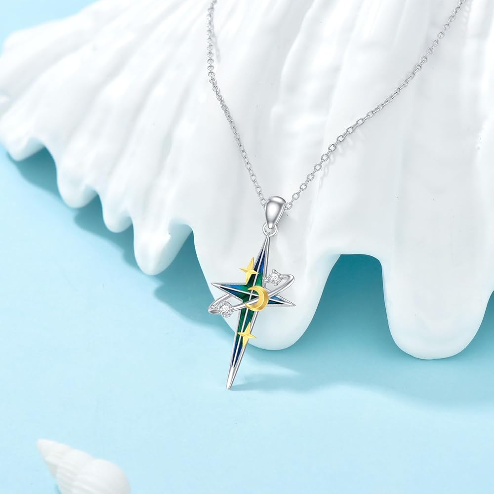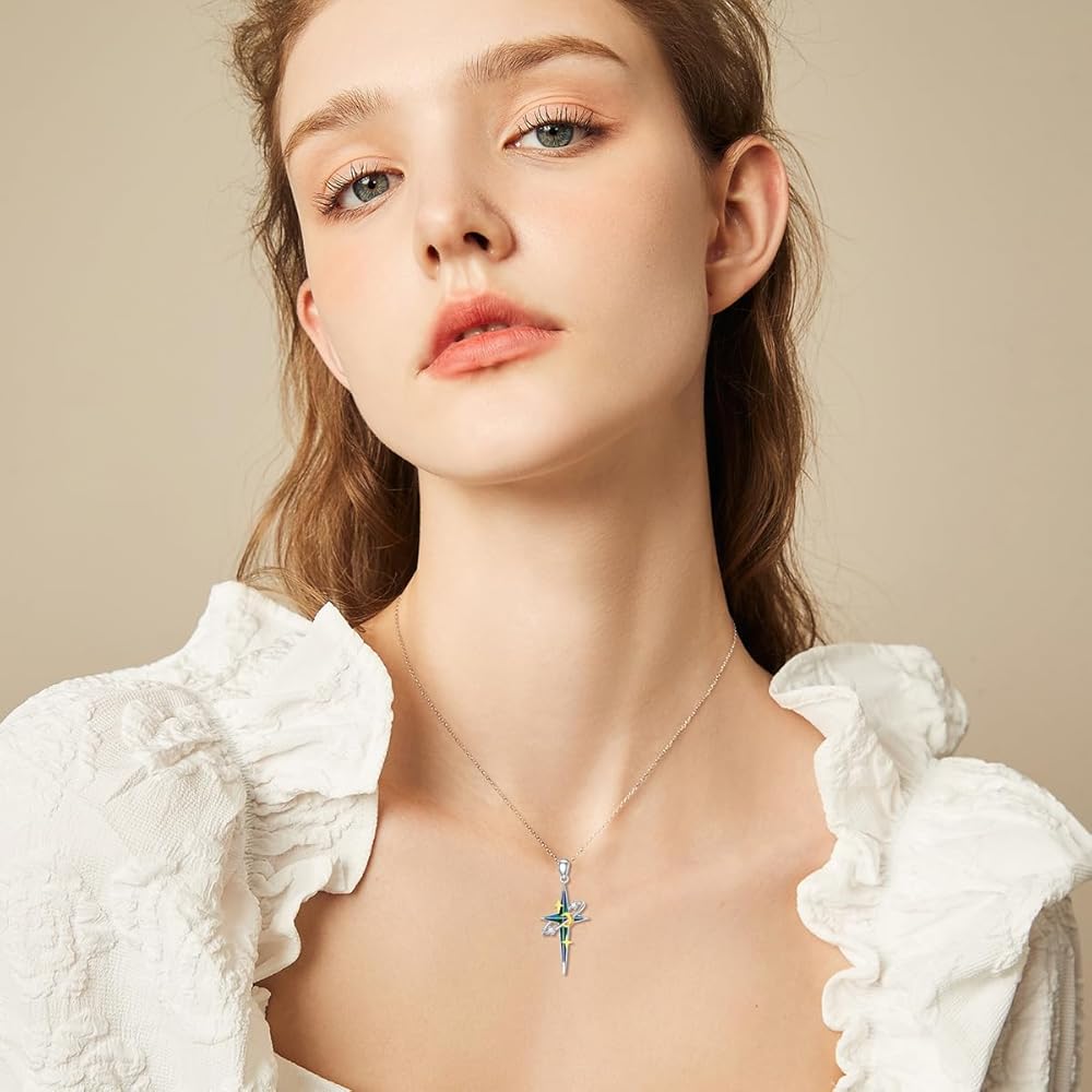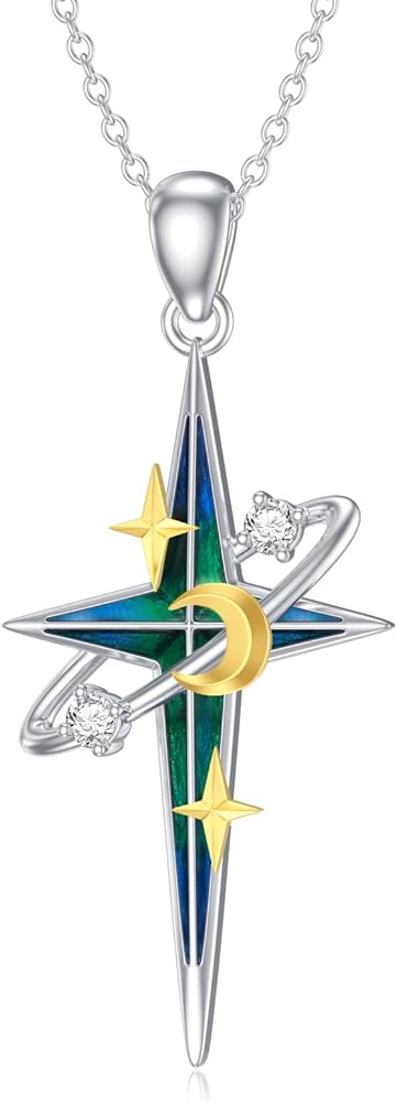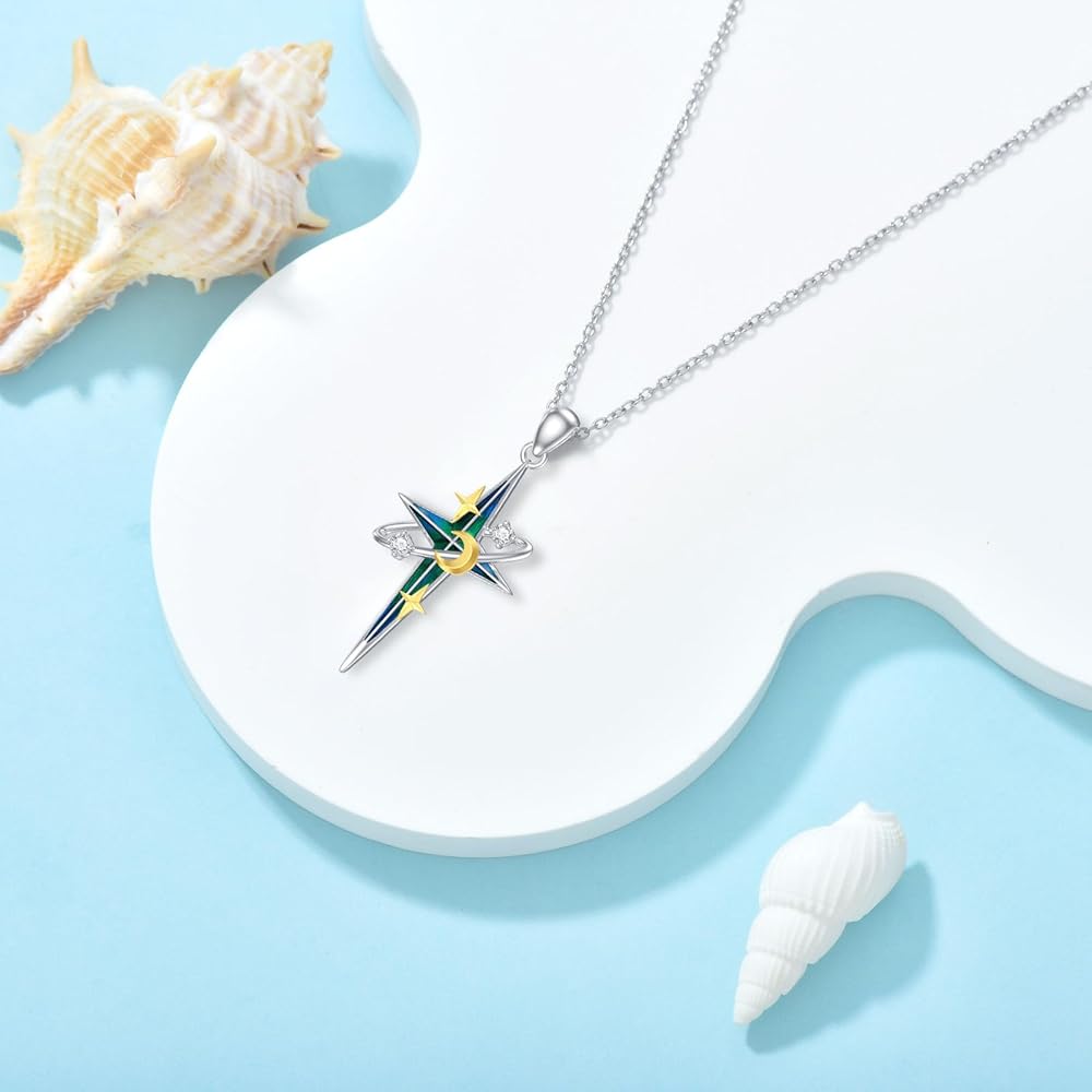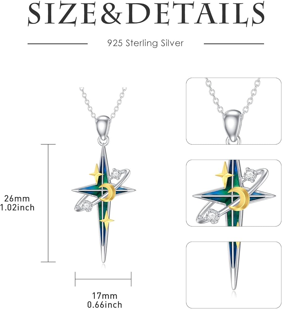 💖 مادة لا تسبب الحساسية 💖 قلادة نجمة الشمال الزرقاء للنساء مصنوعة من الفضة الإسترلينية عيار 925 مع زركونيا مكعب 5A، خالية من النيكل والرصاص ولا تسبب الحساسية، لا تسبب ضررًا للبشرة الحساسة، مريحة للارتداء اليومي.