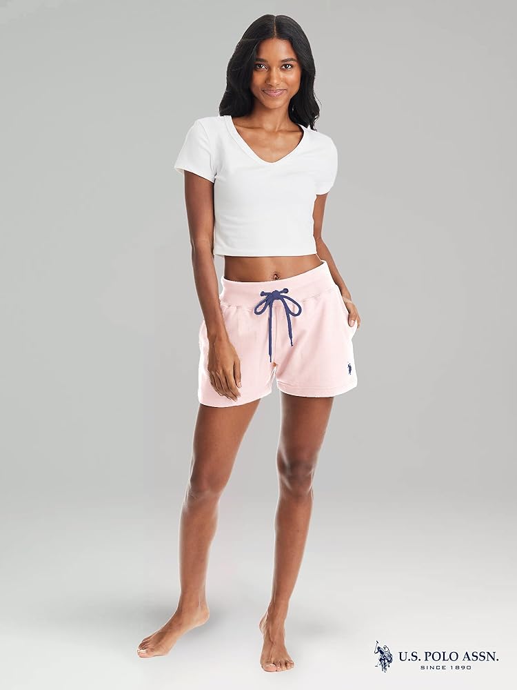نسيج ماص للرطوبة بشكل طبيعي: نسيج تيري فرنسي من القطن والبوليستر يعطي شعورًا بخفة الوزن والراحة على الجسم. نسيج محبوك يمتص الرطوبة بشكل طبيعي من أجل ارتداء مسامي. هذه السراويل القصيرة للنساء تمثل بيجامات وملابس مريحة بشكل أنيق